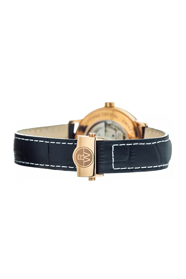 Luxusní pánské hodinky v modrozlatých barvách, s nimiž ve společnosti zaujmete. Jejich srdcem je mechanický pohon, odkazující k letité hodinářské tradici značky Raymond Weil. Analogový číselník zdobí římské číslice a růžově zlacené ručičky, které barevně korespondují s pouzdrem. Stvořeny, aby ohromily.