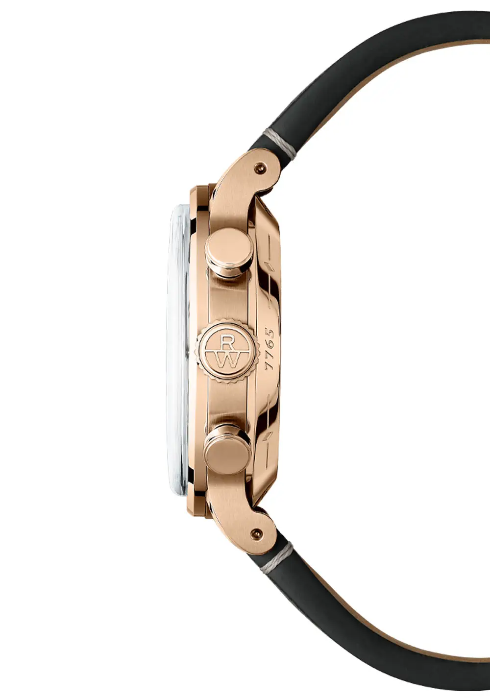 Uvnitř se nachází automatický chronografový strojek RW5030 s rezervou chodu až 62 hodin, subciferníky pro měření času a průhledným dýnkem, které odhaluje precizní mechaniku. Hodinky jsou vodotěsné do 50 metrů a vhodné pro každodenní i společenské nošení.