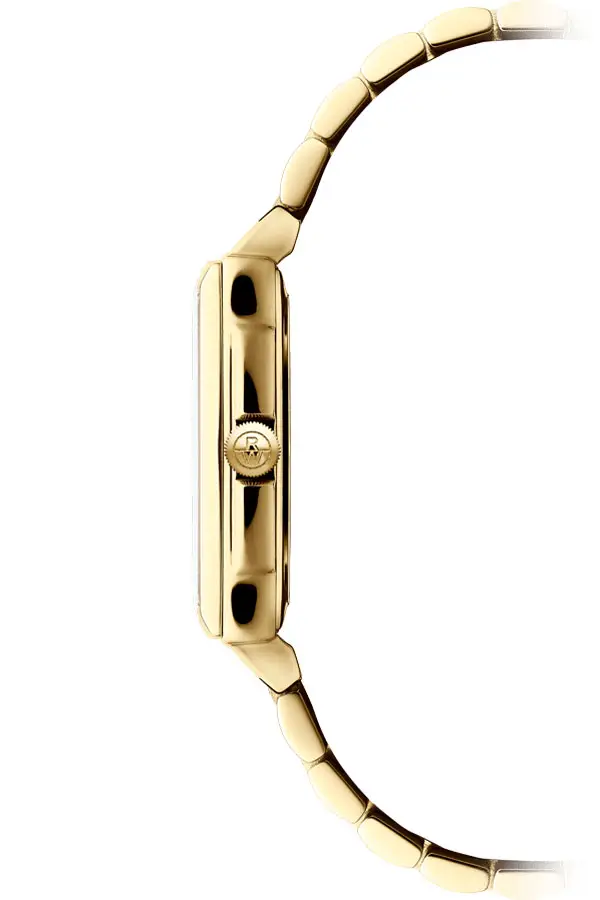 Uvnitř se nachází švýcarský quartzový strojek, který zajišťuje přesný a bezúdržbový chod. Elegantní zlatý ocelový náramek se žlutým zlacením je zakončen překlápěcí sponou, která zajišťuje pohodlné a bezpečné nošení.