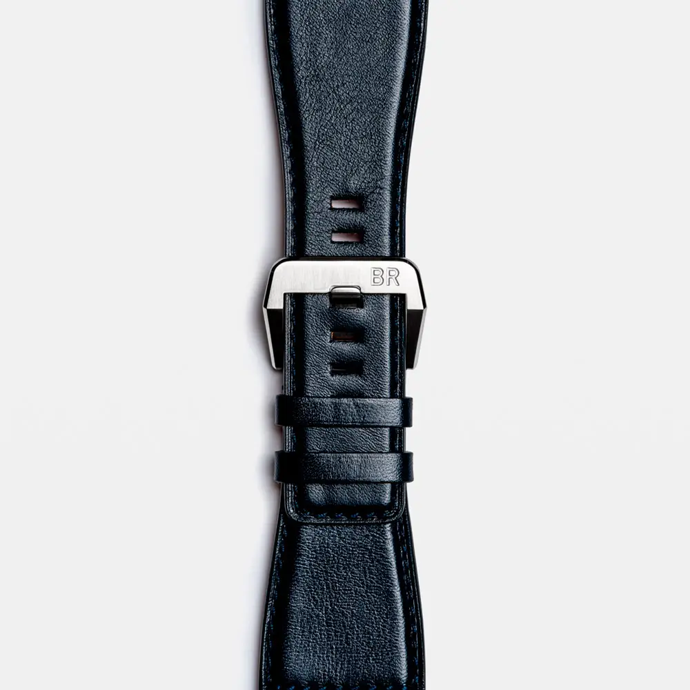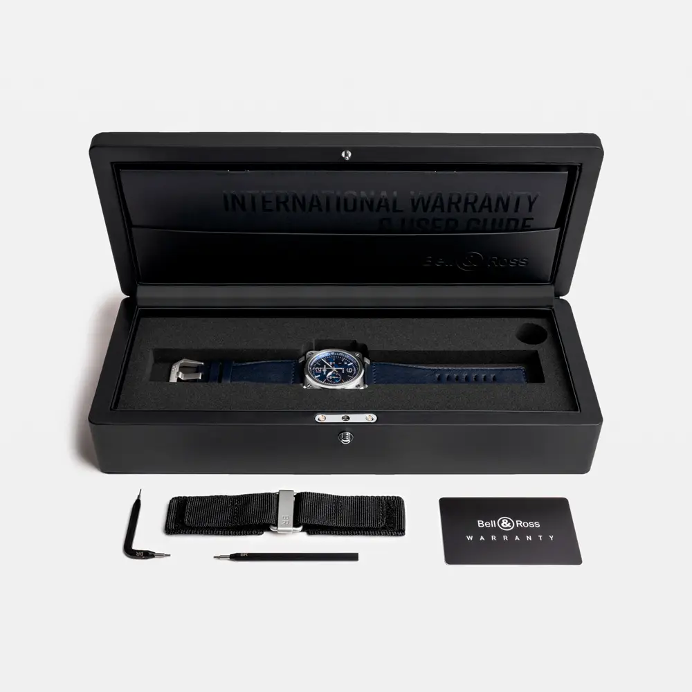 Внутри установлен автоматический калибр BR-CAL.301 с функциями хронографа, даты и запасом хода около 42 часов. Благодаря водонепроницаемости 100 м (10 ATM) и синему кожаному ремешку с классической пряжкой, BR 03-94 Blue Steel идеально подходит как для повседневного ношения, так и для особых случаев. Это воплощение силы, стиля и точного мастерства в духе авиации Bell & Ross.