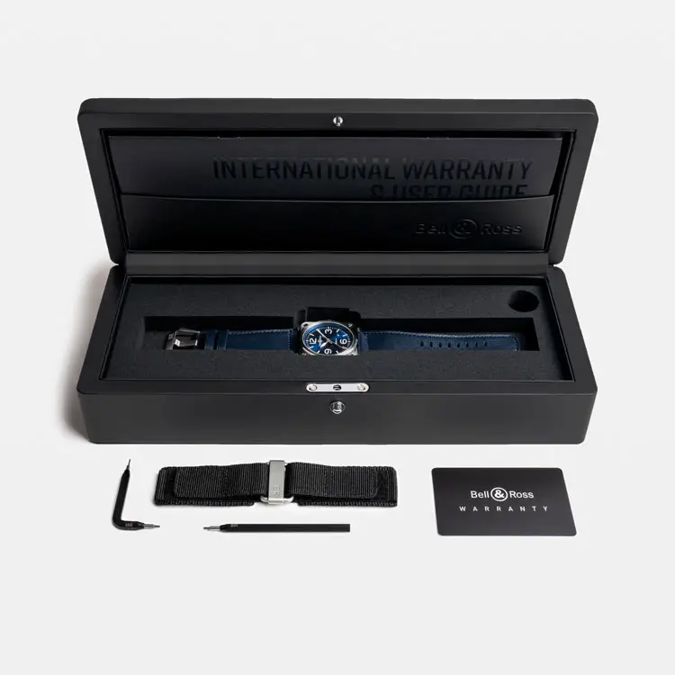 Внутри установлен автоматический калибр BR-CAL.302 с запасом хода 54 часа, гарантирующий точность и стабильность. Синий кожаный ремешок с классической пряжкой идеально сочетается с циферблатом и обеспечивает комфорт. С водонепроницаемостью до 100 м (10 бар) BR 03 Blue Steel воплощает стиль, надёжность и вечную элегантность.