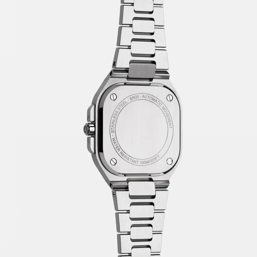 В часах установлен автоматический механизм BR-CAL.321 с 38-часовым запасом хода, который виден через прозрачный сапфировый циферблат. Водонепроницаемость 100 метров и прочная конструкция делают BR 05 Blue Steel идеальным спутником для повседневной жизни в городе - стильным, техничным и уверенным.