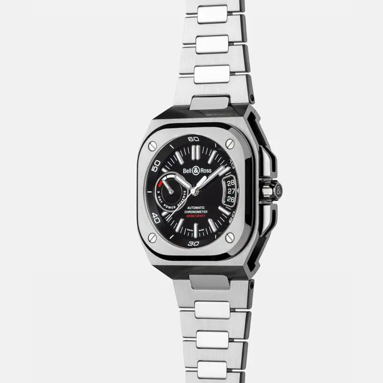 Коллекция BR-X5 от Bell & Ross представляет собой новую главу в эволюции культового квадратного дизайна марки. Эта модельная серия раздвигает границы конструкторской мысли и часового дизайна благодаря многослойной конструкции корпуса, состоящей из различных материалов - чаще всего титана и стали, - что обеспечивает оптимальную прочность и визуальный эффект. Каждый экземпляр этой коллекции оснащен мощным хронометром с автоматическим механизмом BR-CAL.323, сертифицированным COSC, что гарантирует исключительную точность хода.