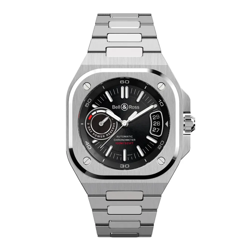 Внутри установлен автомат BR-CAL.323, созданный совместно с Kenissi, с запасом хода 70 часов. Часы имеют индикатор запаса хода и дату. С водонепроницаемостью 100 м BR-X5 Black Steel воплощает современную мощь и швейцарскую точность.