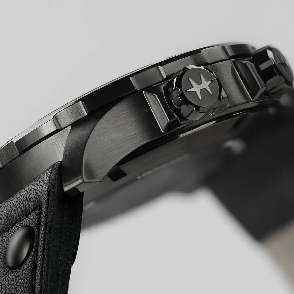 Hamilton Aviation X-Wind Day Date Auto H77785733 — это прочные авиационные часы, созданные для ценителей точной инженерии и выразительного дизайна. Их круглый корпус диаметром 45 мм выполнен из нержавеющей стали с черным PVD-покрытием, что придаёт прочность и современный матовый вид. Сапфировое стекло защищает циферблат от царапин. Водонепроницаемость до 10 ATM (100 метров) позволяет использовать часы даже при плавании.
