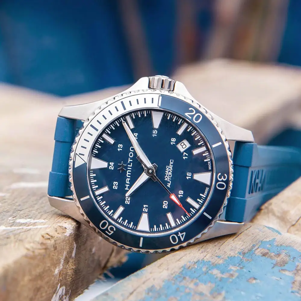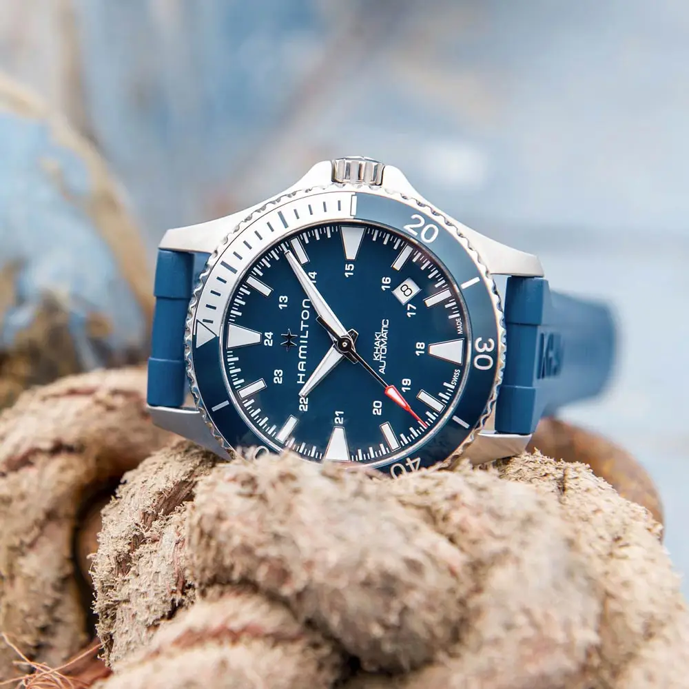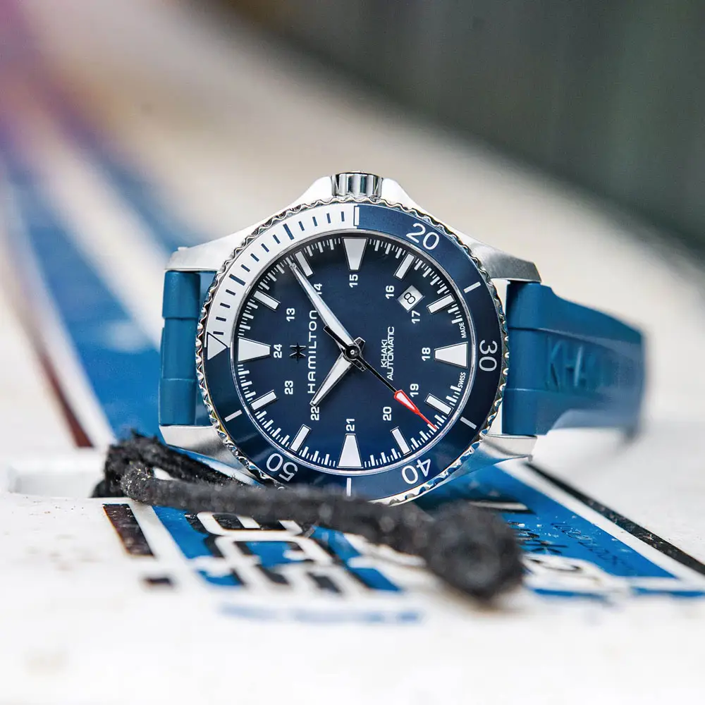 Khaki Navy - это коллекция Hamilton, созданная для любителей водных видов спорта, приключений и морского стиля. Опираясь на традиции Hamilton в области морских часов, она сочетает в себе прочную конструкцию, высокую водонепроницаемость и оригинальный дизайн, который будет уместен как на палубе, так и под водой.