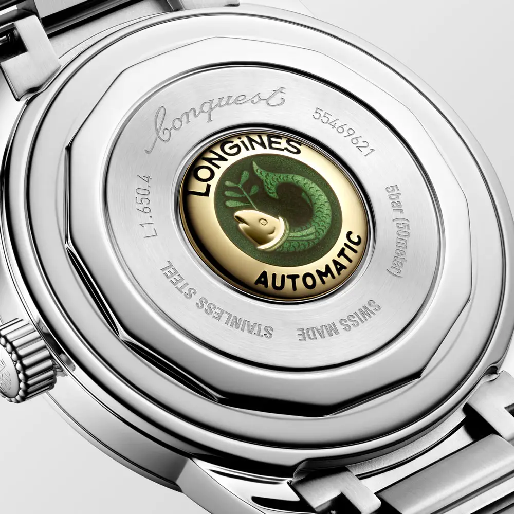 Модель комплектуется стальным браслетом с застёжкой-«бабочкой», обеспечивающим удобство и безопасность при ношении. Водонепроницаемость 50 м делает часы подходящими для ежедневного использования. Longines Conquest Heritage L1.650.4.92.6 — это изысканное сочетание классической элегантности, часовского наследия и современных технологий, которое ценят поклонники качественных швейцарских механических часов.