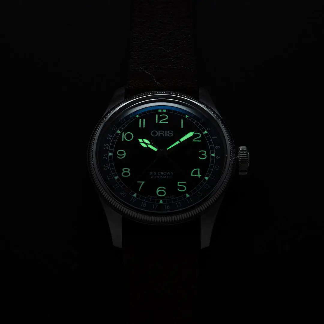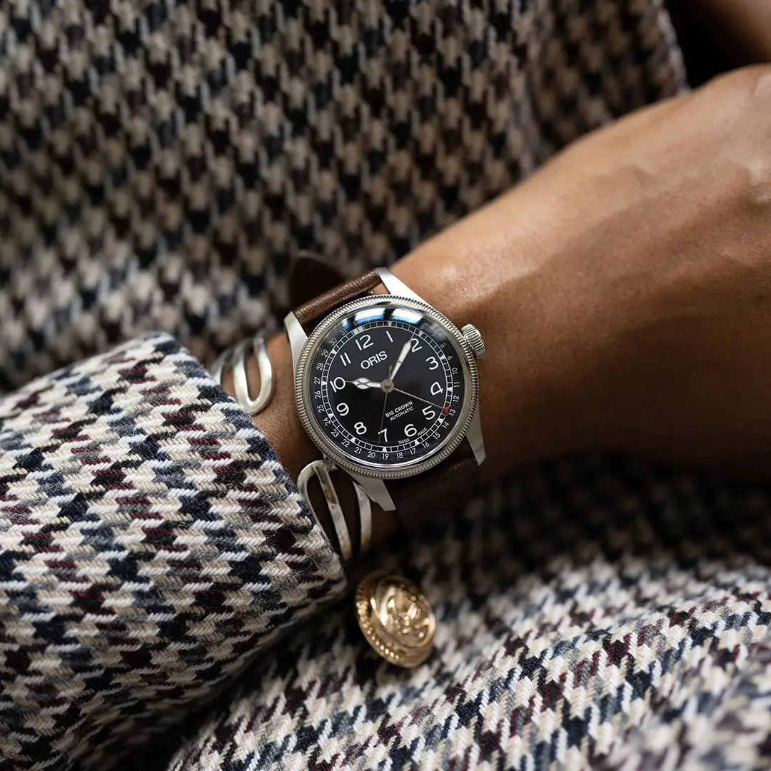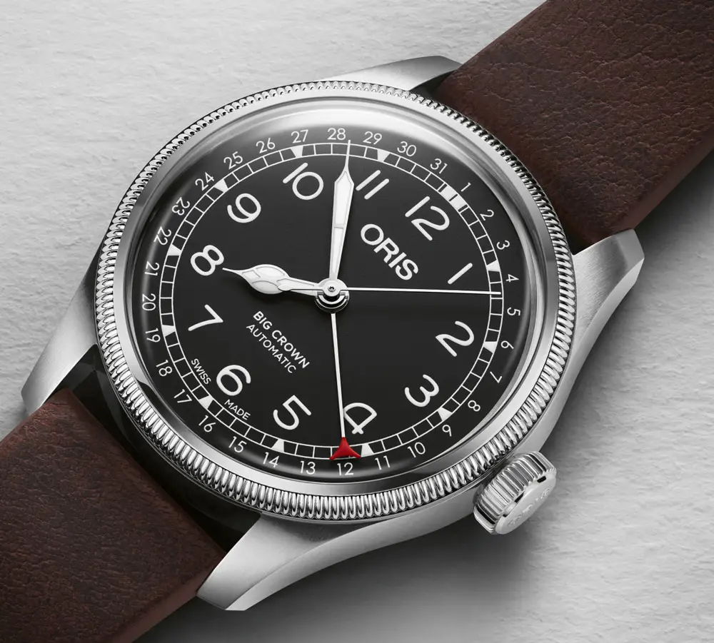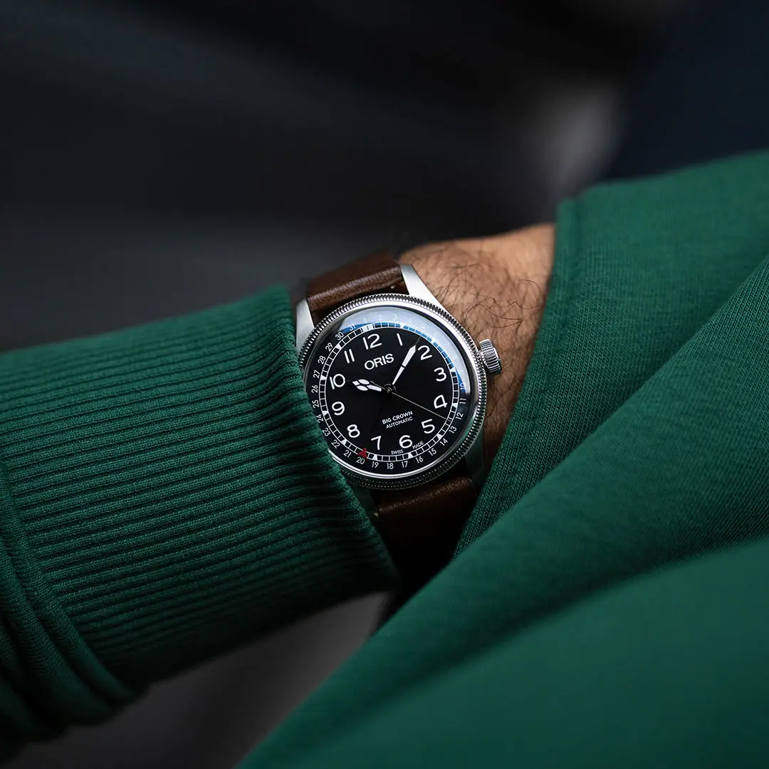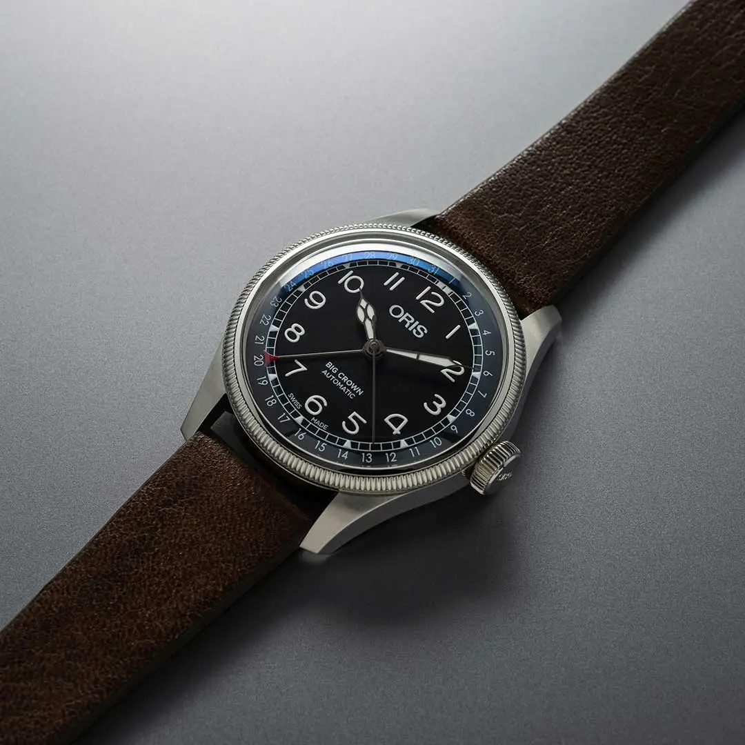 Oris Big Crown - одна из самых знаковых коллекций бренда, представленная в 1938 году как часы для пилотов. Отличительная особенность - большая зубчатая заводная головка, рассчитанная на работу даже в перчатках, - деталь, которая по-прежнему отсылает к авиационным корням коллекции.