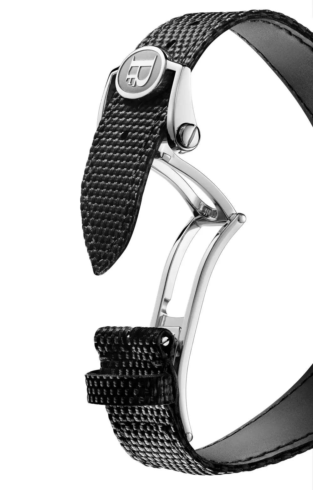 Модель дополнена черным каучуковым ремешком с фактурной тканью в стиле Cordura и элегантной стальной застежкой. Водонепроницаемость 100 м и спортивный, но изысканный дизайн - идеальный спутник для повседневной носки и особых случаев.
