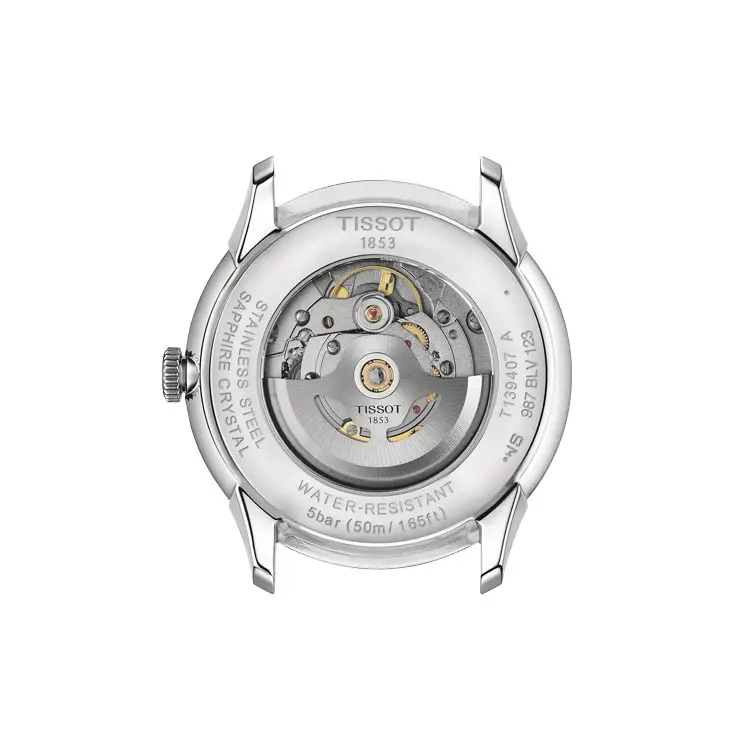 Механизм Powermatic 80 с автоподзаводом обеспечивает до 80 часов запаса хода, снижая необходимость в частом заводе. Сапфировое стекло с антибликовым покрытием защищает циферблат, а прозрачная задняя крышка позволяет увидеть работу механизма. Водонепроницаемость до 50 метров делает модель подходящей для повседневного использования.