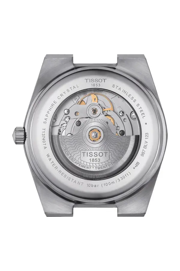 Внутри установлен автоматический калибр Powermatic 80 с запасом хода 80 часов и спиралью Nivachron, устойчивой к магнитным полям и вибрациям, что повышает точность хода. Прозрачная задняя крышка позволяет увидеть изысканную отделку механизма — символ качества Tissot.