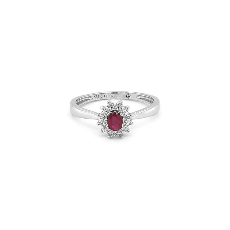Rubínový prsten s diamanty z bílého zlata
