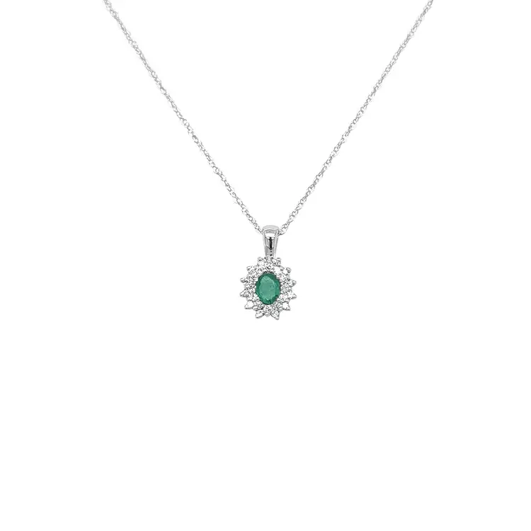 Smaragdový přívěsek s diamanty z bílého zlata