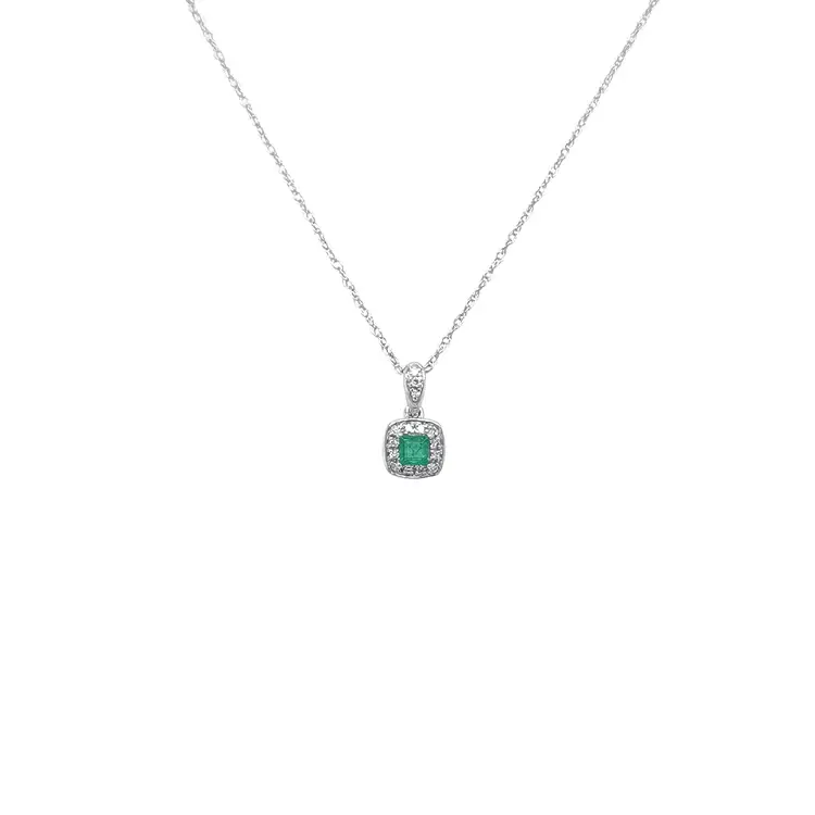 Smaragdový přívěsek s diamanty z bílého zlata