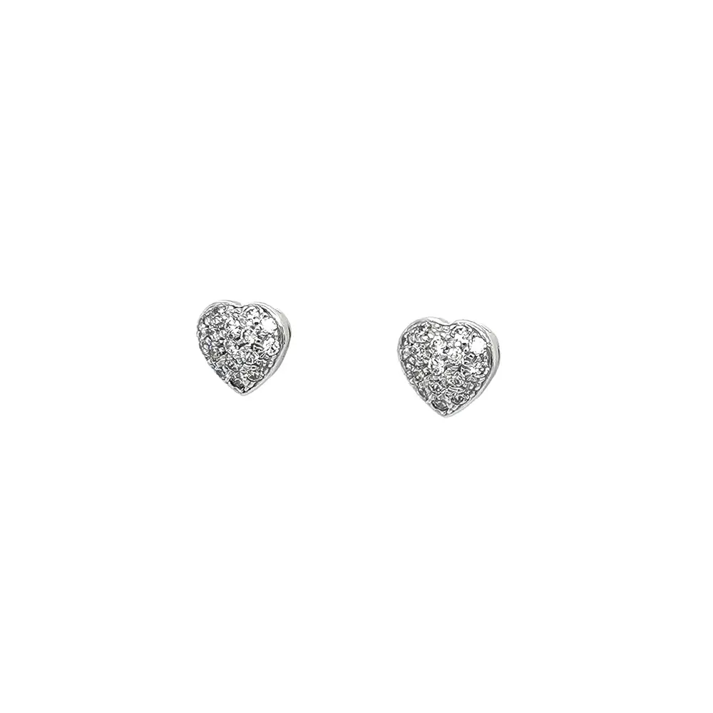 Srdíčkové Náušnice z Bílého Zlata s Jemnými Zirkony