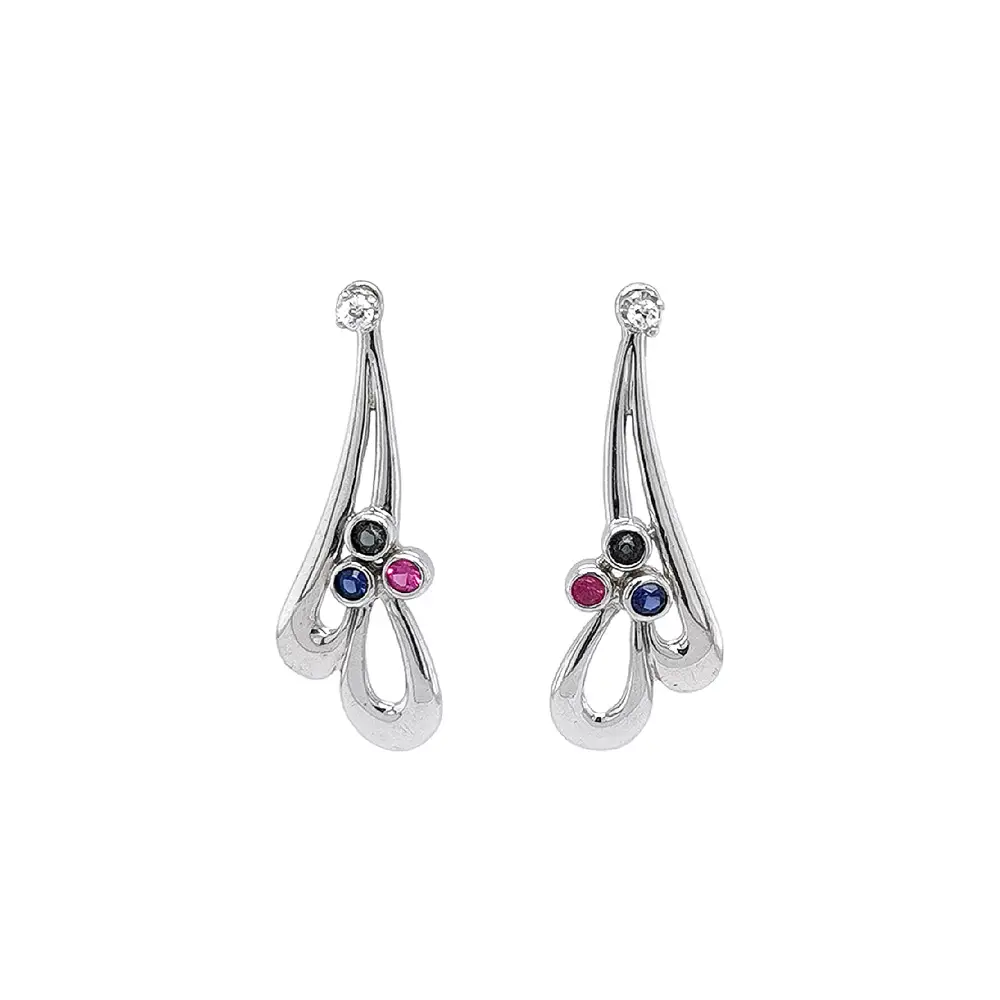 Stylové Náušnice z Bílého Zlata s Pestrými Kameny