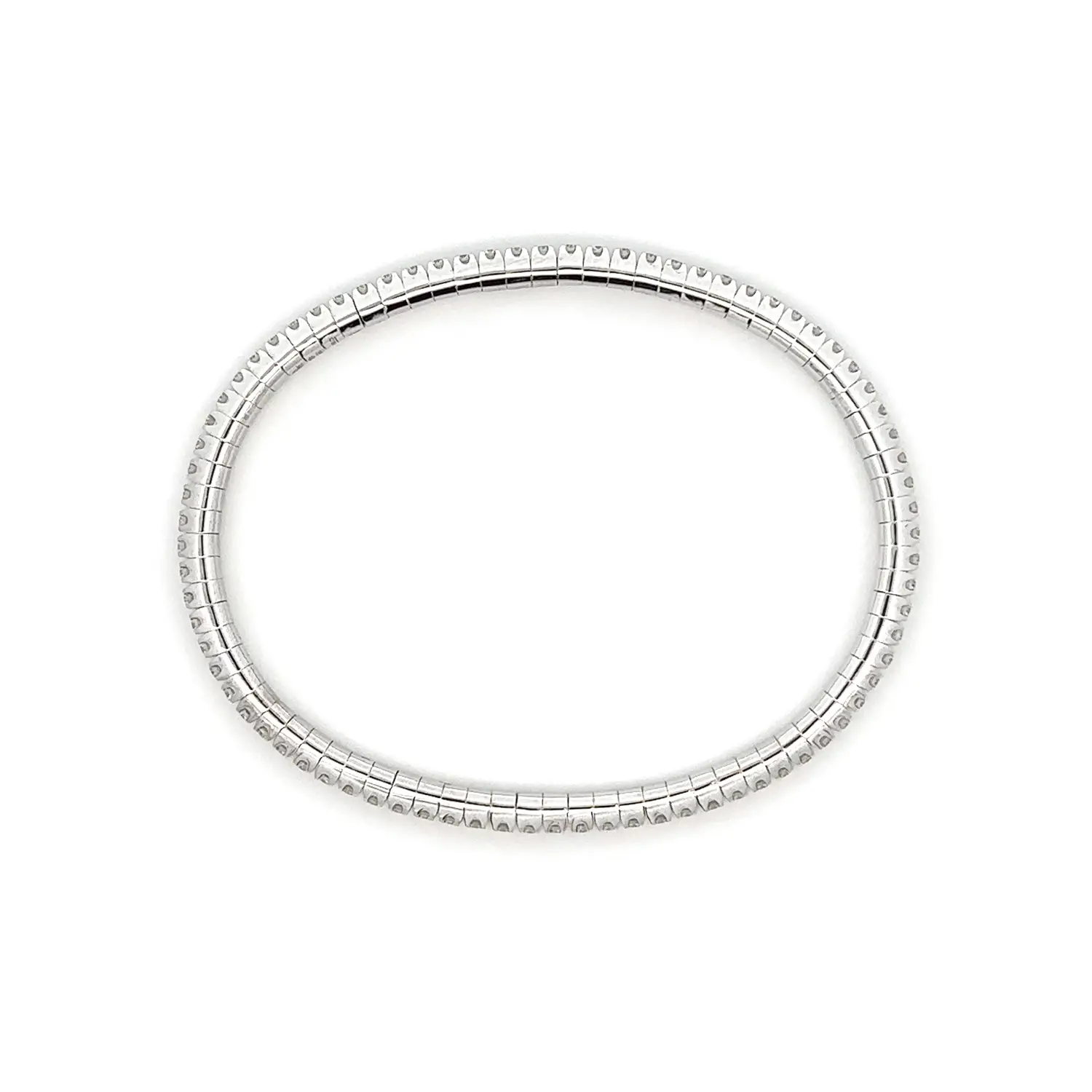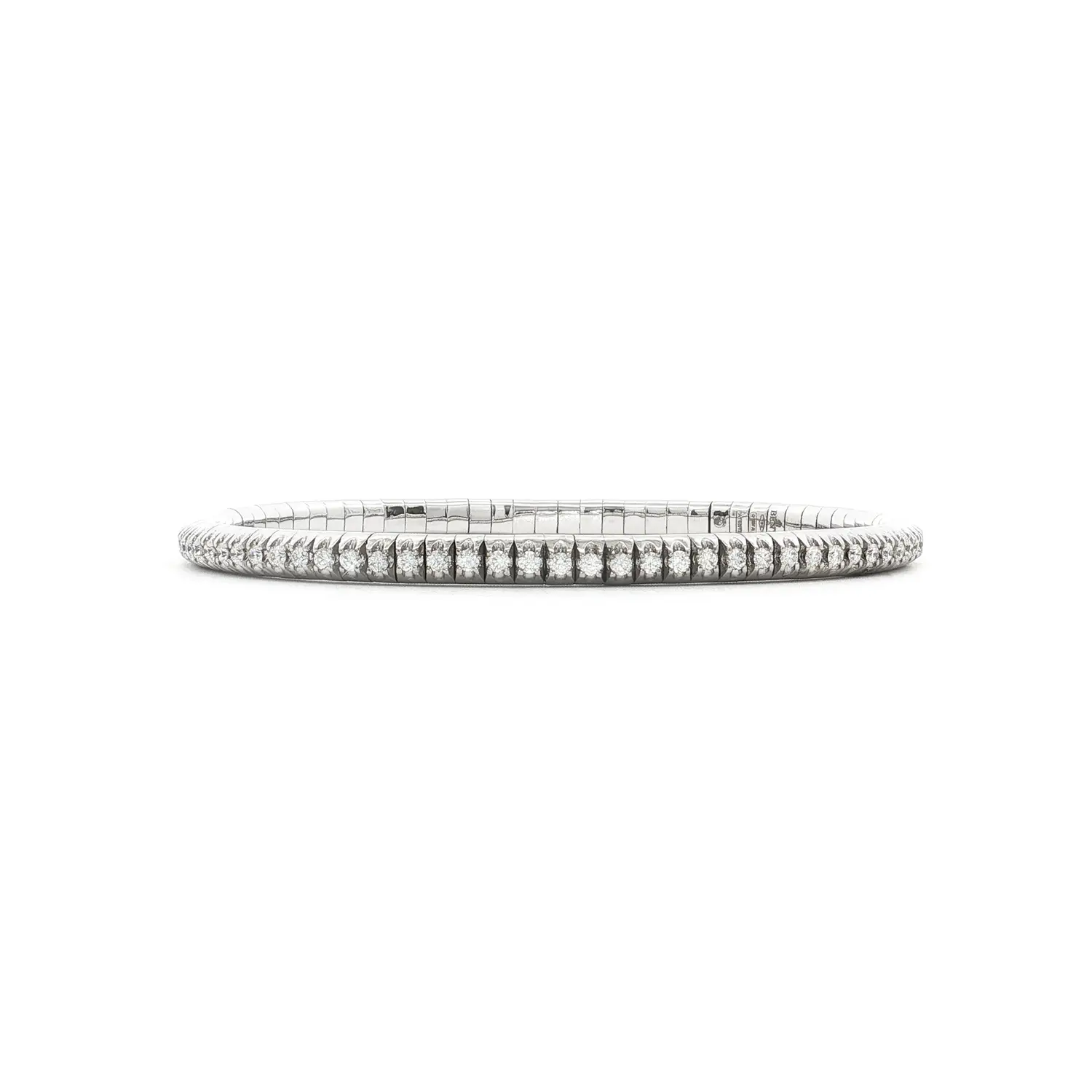 Náramek vyniká dokonale flexibilní konstrukcí, která zajišťuje pohodlné nošení a přirozený pohyb. Kombinace bílého zlata a dokonale broušených diamantů představuje nadčasovou harmonii lesku a čistoty, díky níž se tento šperk stává symbolem ženské sofistikovanosti.