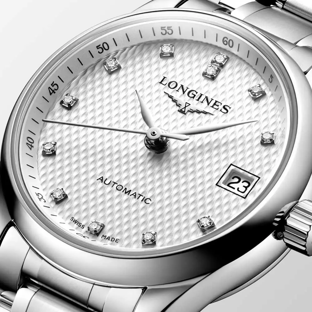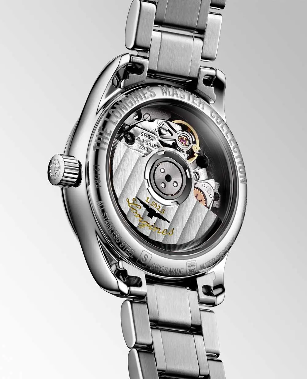 Uvnitř pracuje automatický kalibr L592 s rezervou chodu až 45 hodin, který zajišťuje přesnost a spolehlivost. Hodinky disponují vodotěsností do 30 metrů (3 ATM) a jsou osazeny ocelovým tahem se skládací sponou s trojitým jištěním, čímž podtrhují luxusní charakter dámské řady The Longines Master Collection.