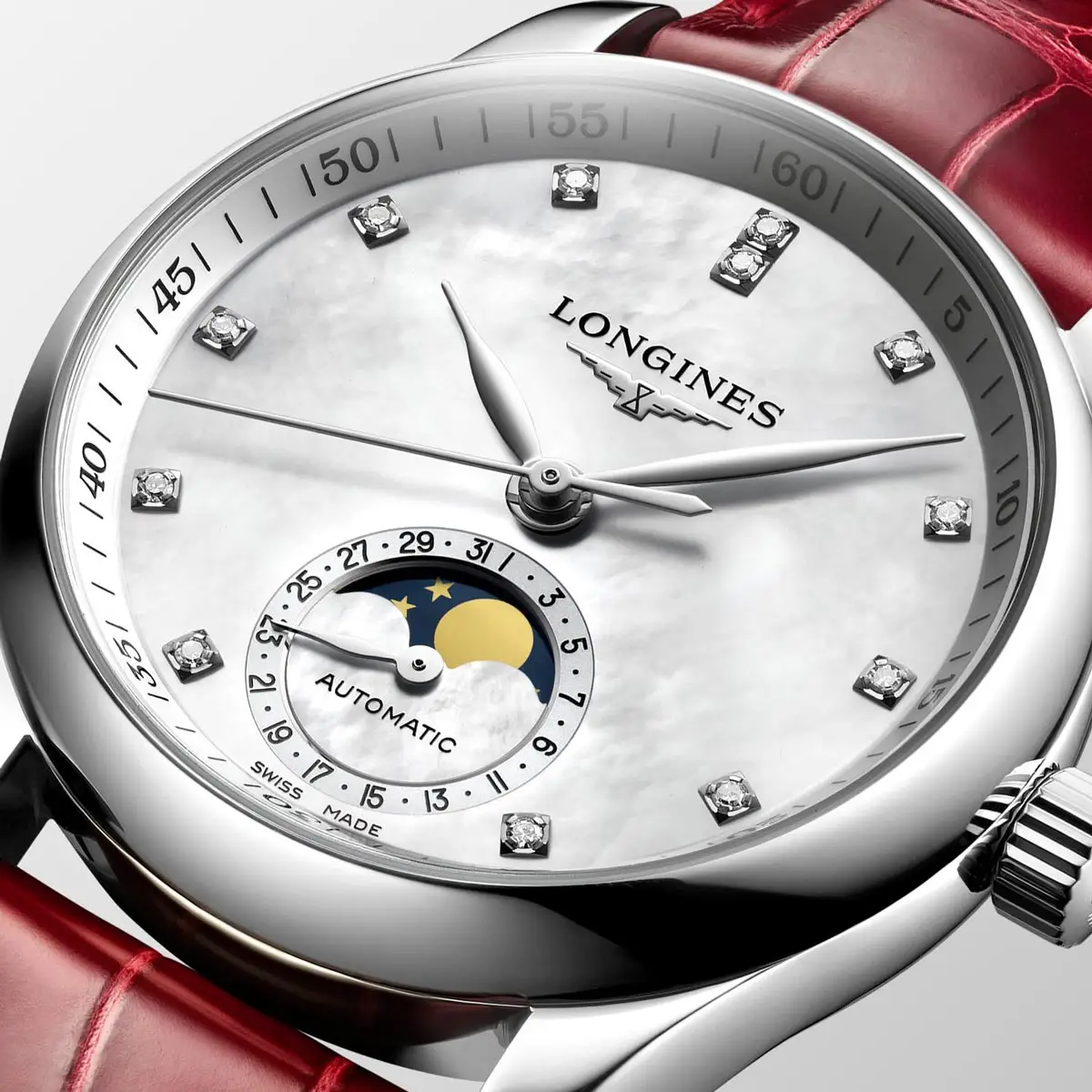 The Longines Master Collection L2.409.4.87.2 je dokonalou volbou pro ženy, které hledají spojení precizního švýcarského řemesla, elegantního designu, luxusních materiálů a atraktivních komplikací jako je indikace měsíční fáze.