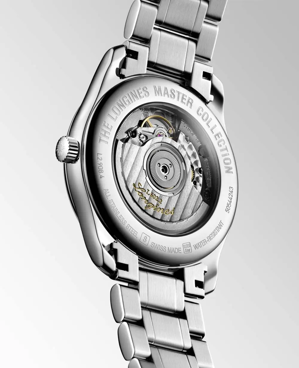 Uvnitř pracuje automatický kalibr L602, který zajišťuje přesné měření času i funkci rezervy chodu. Hodinky disponují vodotěsností do 30 metrů (3 ATM) a jsou osazeny ocelovým tahem s trojitě jištěnou skládací sponou. Tento model dokonale vystihuje charakter prestižní řady The Longines Master Collection.