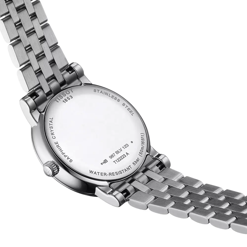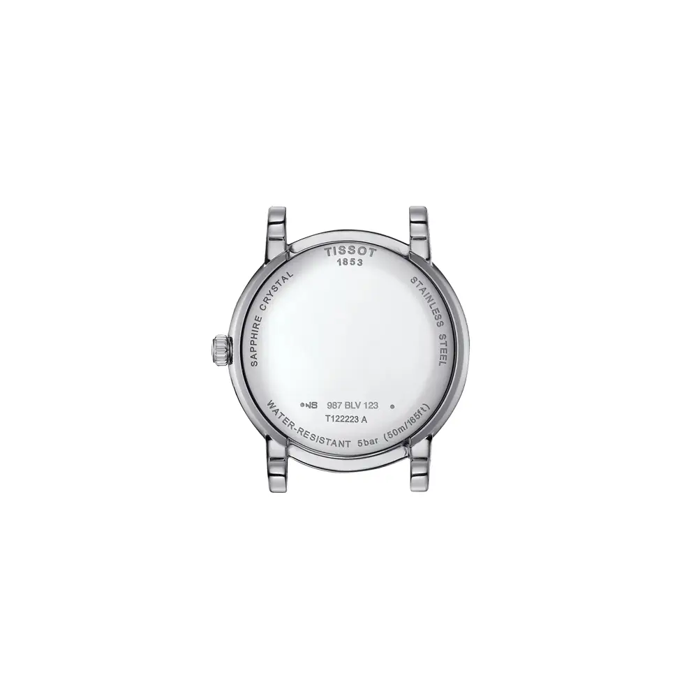 Uvnitř modelu pracuje švýcarský quartzový strojek ETA F05.841, který nabízí spolehlivý chod, nízké nároky na údržbu a praktickou funkci EOL (indikace slabé baterie). Nechybí ani datumovka, která doplňuje každodenní funkčnost. T122.223.11.033.00 je tak výjimečným spojením ženské elegance, kvalitního hodinářství a užitečných komplikací, které potěší každou náročnější uživatelku.
