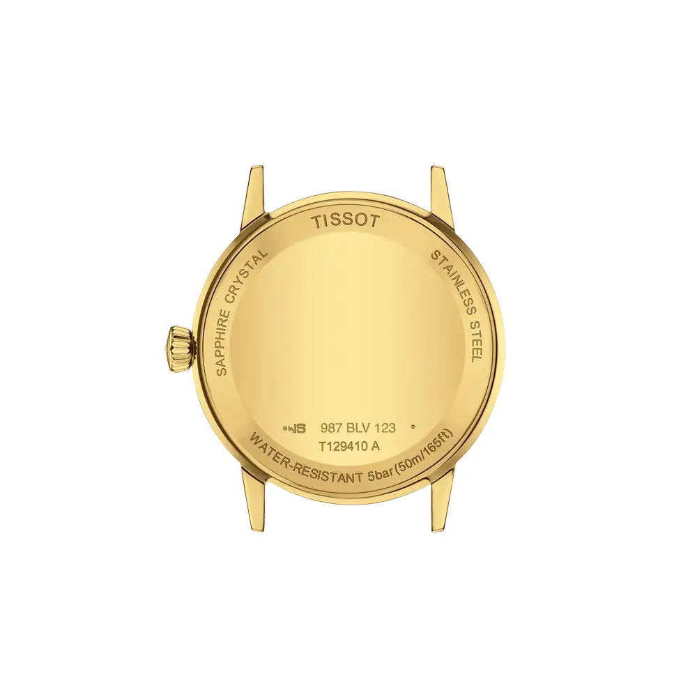 Tissot Classic Dream Gent T129.410.36.261.00 představuje elegantní a nadčasový model, který spojuje klasický design, švýcarskou preciznost a luxusní dvoubarevné provedení. Pouzdro o průměru 42 mm z ušlechtilé oceli 316L je zdobeno žlutým PVD zlacením, které hodinkám dodává sofistikovaný charakter. Béžový ciferník s jemnými indexy a zlatými detaily vytváří harmonický, formální vzhled, ideální jak k obleku, tak k elegantnímu volnočasovému outfitu.