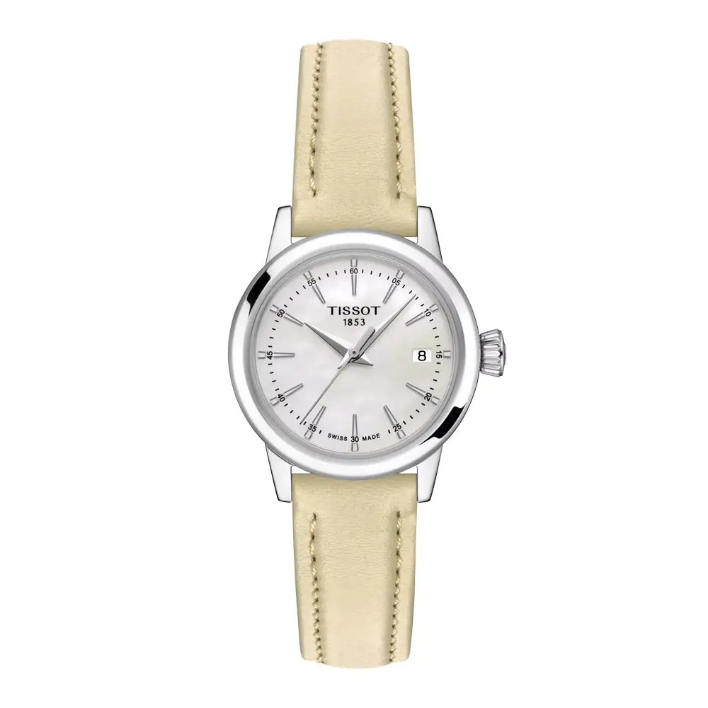 Dámské hodinky Tissot Classic Dream Lady T129.210.16.111.00 představují nadčasovou eleganci v jemném a ženském provedení. Kulaté pouzdro z nerezové oceli o průměru 28 mm působí subtilně a harmonicky, díky čemuž je tento model ideální volbou pro každodenní nošení i slavnostnější příležitosti. Čisté linie a klasické proporce odkazují na tradiční švýcarské hodinářství.