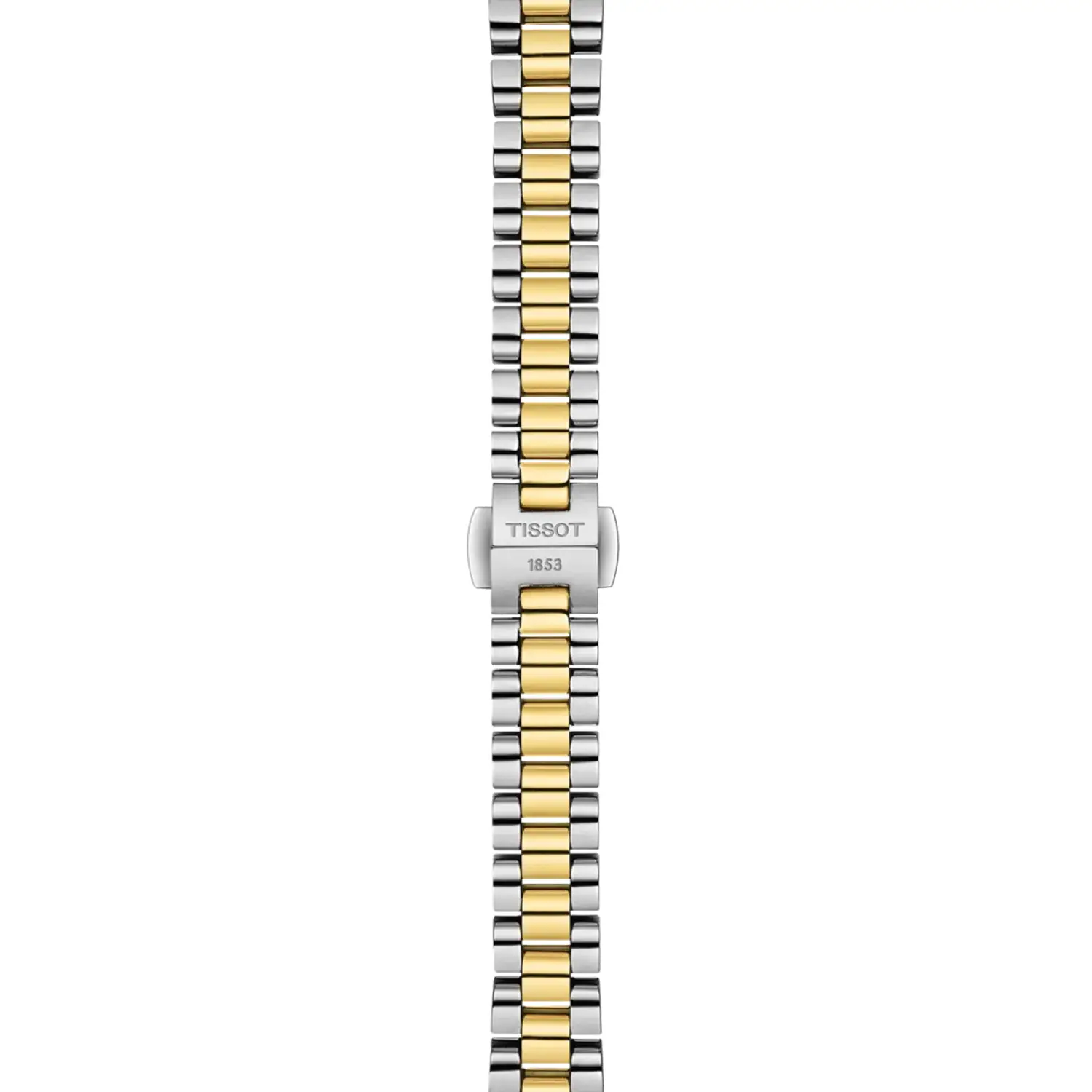 Uvnitř se nachází spolehlivý švýcarský quartzový strojek s funkcí EOL (End of Life), která upozorní na blížící se vybití baterie. Kombinace precizního zpracování a praktických detailů podtrhuje kvalitu, pro kterou je Tissot již po generace synonymem. Dvoubarevný ocelový tah doplňuje design a zajišťuje vysoký komfort při nošení.
