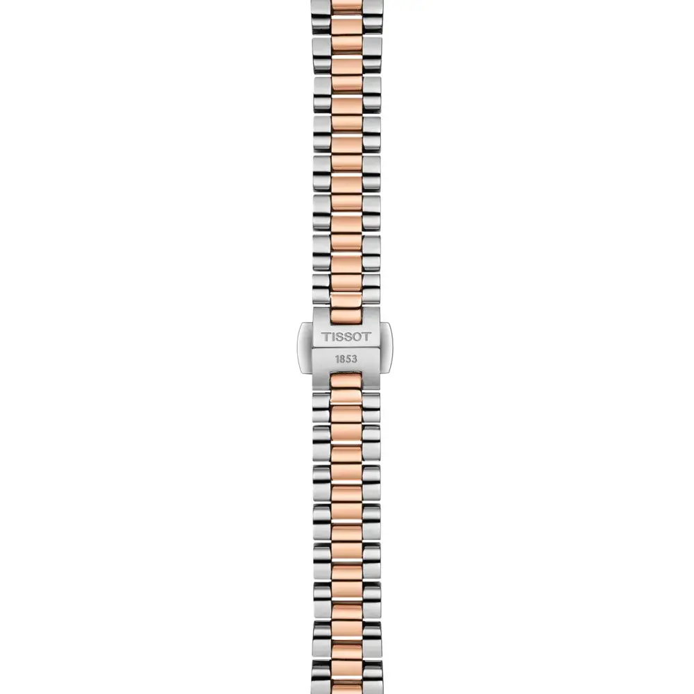 Elegantní dvoubarevný ocelový tah s růžově-zlatými články a motýlovou sponou s tlačítky zajišťuje komfort a bezpečné nošení. Tissot Desir je ideální volbou pro ženy, které hledají kombinaci švýcarské kvality, jemného designu a nadčasového stylu.