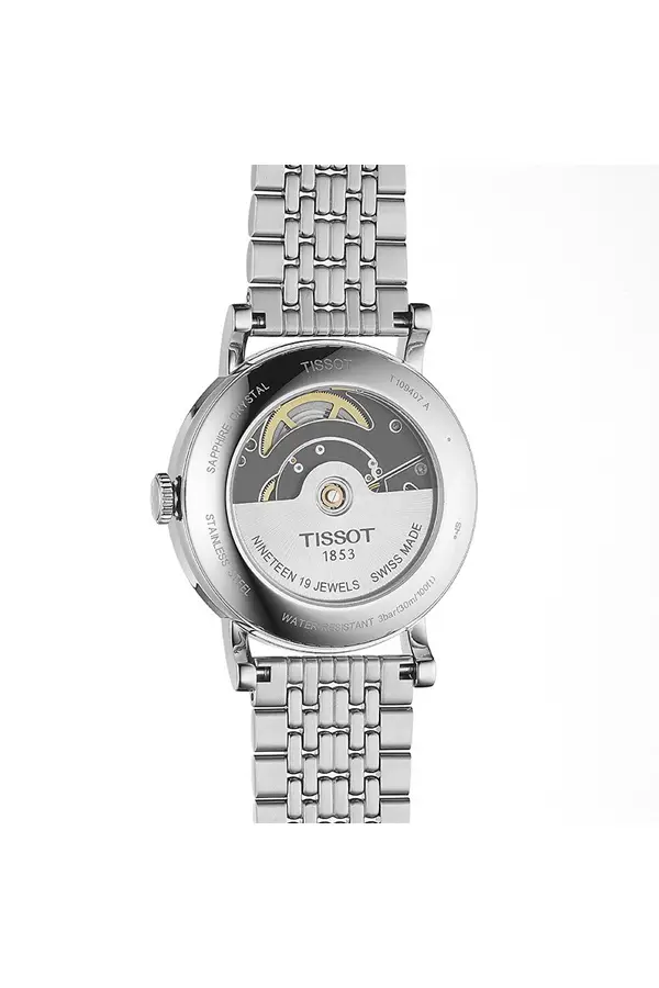 Tissot Everytime Swissmatic T109.407.11.031.00 je elegantní a minimalistický pánský model, který dokonale vystihuje filozofii čistého designu značky Tissot. Jeho kulaté ocelové pouzdro o průměru 40 mm působí nadčasově a je chráněno odolným safírovým sklíčkem, jež zajišťuje vysokou ochranu proti poškrábání. Díky vodotěsnosti 3 ATM (30 m) jsou hodinky ideální pro každodenní nošení.