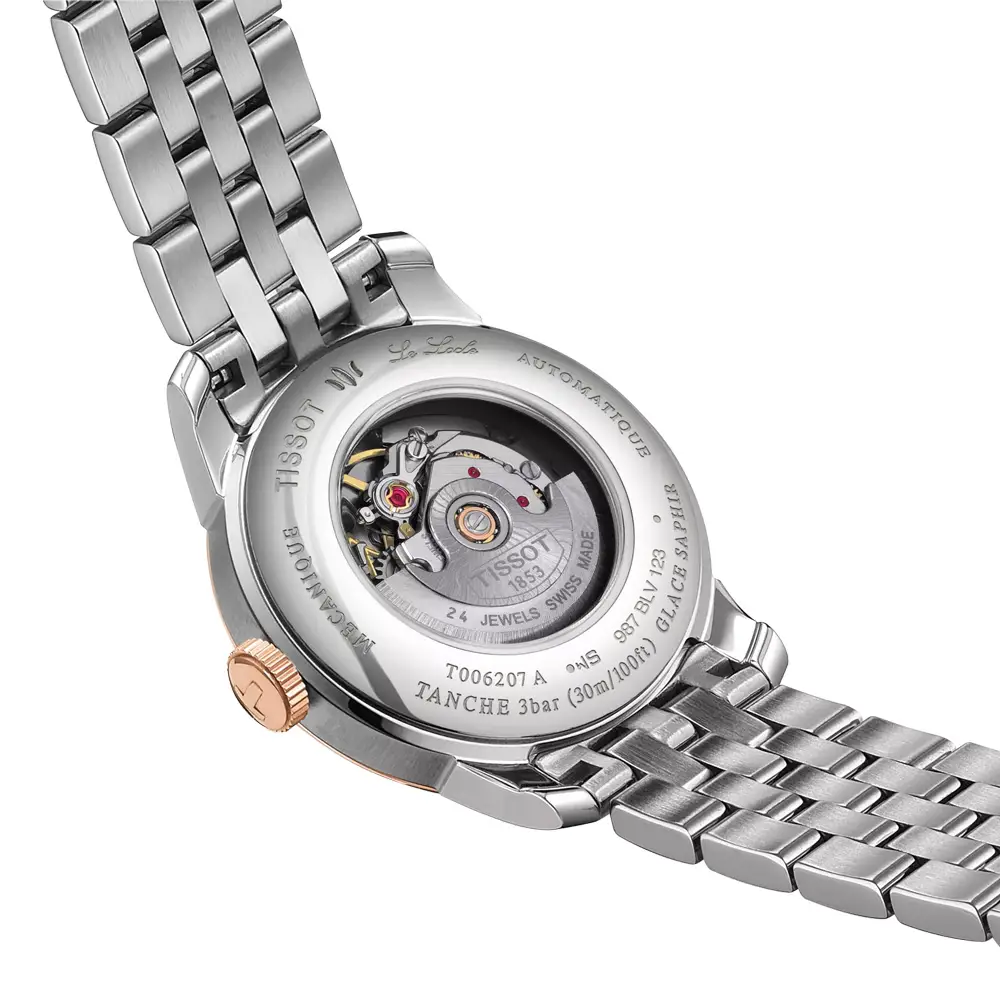 Model Tissot Le Locle Automatic Lady T006.207.22.036.00 propojuje tradiční švýcarské hodinářství s elegantní estetikou, která osloví každou ženu s citlivým vkusem. Pouzdro z nerezové oceli 316L s růžově zlatou PVD úpravou a průměr 29 mm vytvářejí ušlechtilý, jemně ženský výraz. Stříbrný číselník s římskými číslicemi a osmi diamanty podtrhuje nadčasový luxus a dodává modelu výjimečnou eleganci.