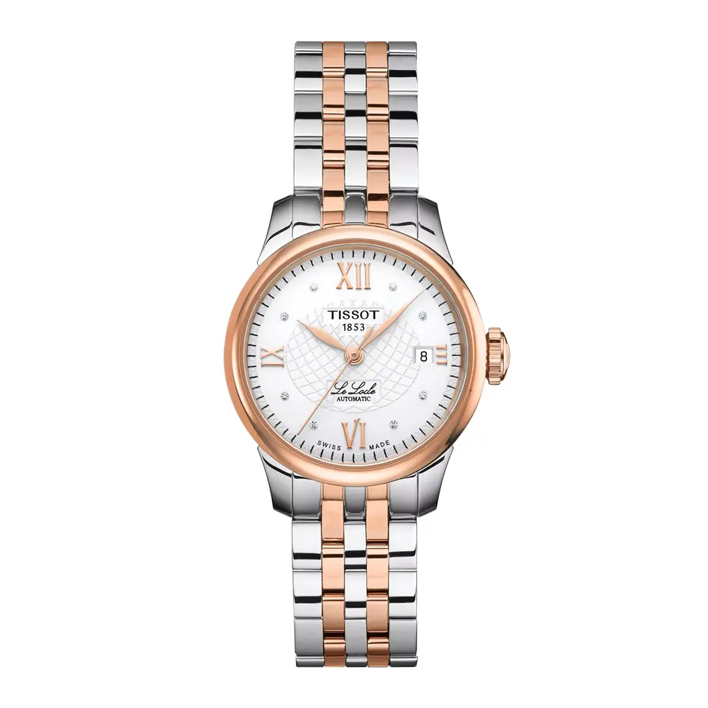 Tissot Le Locle Automatic Lady T41.2.183.16 představuje elegantní dámské hodinky založené na klasickém švýcarském designu a jemných detailech. Kompaktní 25,3mm pouzdro z oceli s růžovým PVD zlacením působí sofistikovaně, zatímco stříbrný ciferník zdobený římskými číslicemi a osmi vsazenými diamanty dodává hodinkám nadčasovou ženskost. Styl dokončuje kvalitní hnědý kožený řemínek.