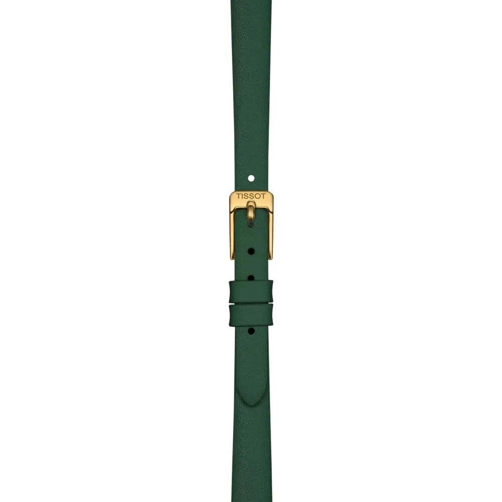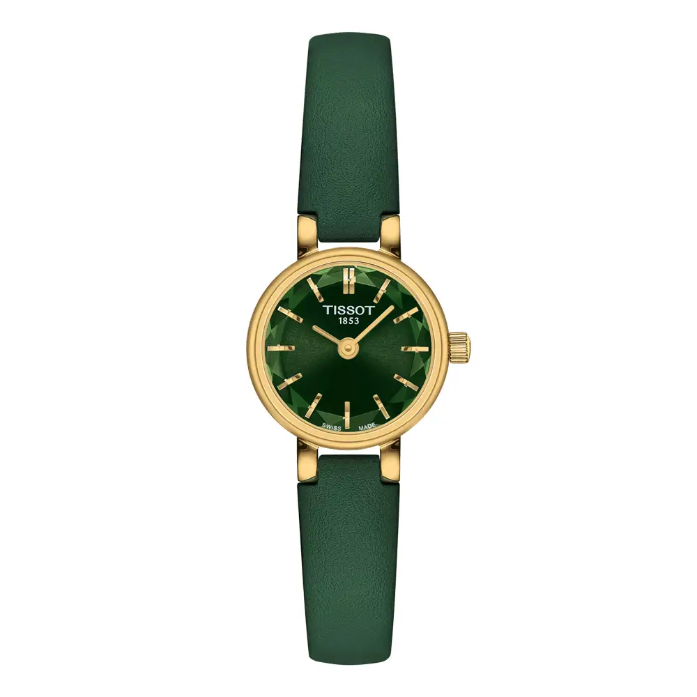 Tissot Lovely Round T140.009.36.091.00 jsou elegantní dámské hodinky z kolekce T-Lady – Lovely, které spojují klasický design inspirovaný vintage stylem s moderním švýcarským zpracováním. Kulaté pouzdro o průměru 19,5 mm je vyrobeno z nerezové oceli 316L s PVD zlatou úpravou, která zajišťuje vysokou odolnost a luxusní vzhled. Hodinky zaujmou především zeleným sunray ciferníkem, který vytváří jemné světelné odlesky a dodává modelu sofistikovaný charakter.