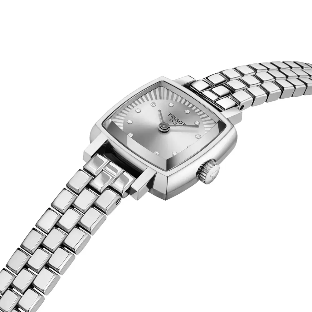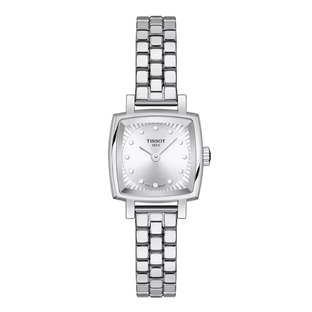 Tissot Lovely Square T058.109.11.036.01 jsou elegantní dámské hodinky ze švýcarské kolekce T-Lady, které kombinují jemný design s precizním zpracováním. Pouzdro o velikosti 20 × 20 mm je vyrobeno z kvalitní nerezové oceli 316L, která zajišťuje dlouhou životnost a vysokou odolnost proti korozi. Minimalistický čtvercový design doplňuje stříbrný ciferník s 12 diamantovými indexy (celkem cca 0,0252 ct), které hodinkám dodávají luxusní charakter a výraznou eleganci.