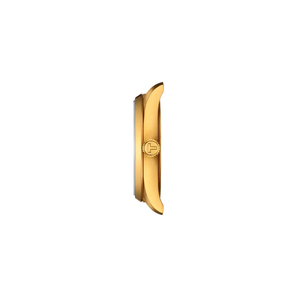 Tissot PR 100 34mm T150.210.33.021.00 je elegantní a zároveň odolný model, který v sobě spojuje švýcarskou preciznost a nadčasový styl. Kulaté pouzdro o velikosti 34 mm je vyrobeno z ušlechtilé oceli se žlutým zlacením, které dodává hodinkám luxusní vzhled a zároveň zajišťuje jejich dlouhou životnost. Ciferník chrání safírové sklíčko, které je vysoce odolné vůči poškrábání.