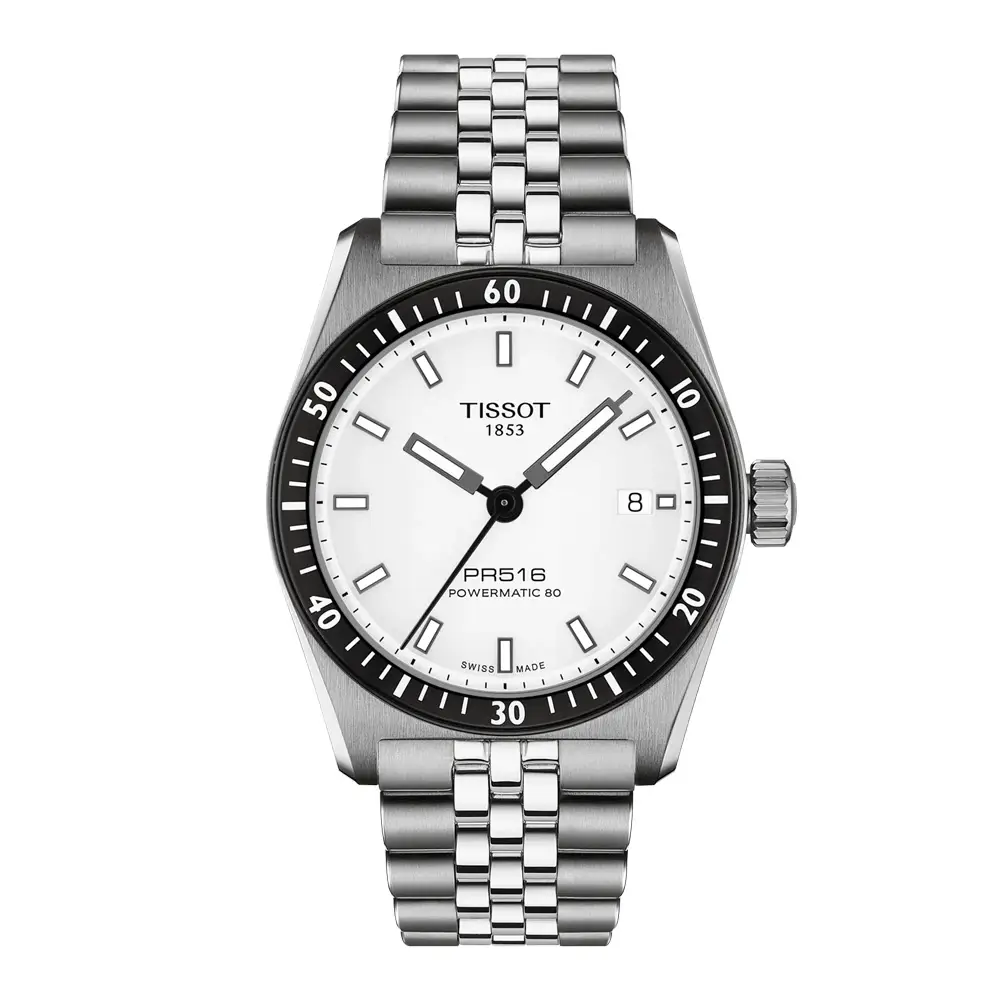 Pánské hodinky Tissot PR516 Powermatic 80 T149.407.11.031.00 spojují švýcarskou hodinářskou tradici, sportovní design a moderní technologie. Model navazuje na legendární kolekci PR516, která byla inspirována motoristickými závody již v 60. letech. Hodinky zaujmou čistým bílým ciferníkem s luminiscenčními indexy, který zajišťuje skvělou čitelnost a zároveň vytváří nadčasový sportovně-elegantní vzhled.