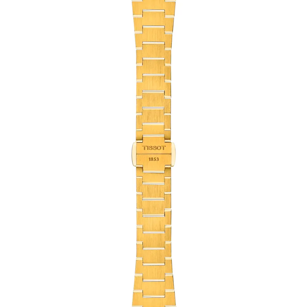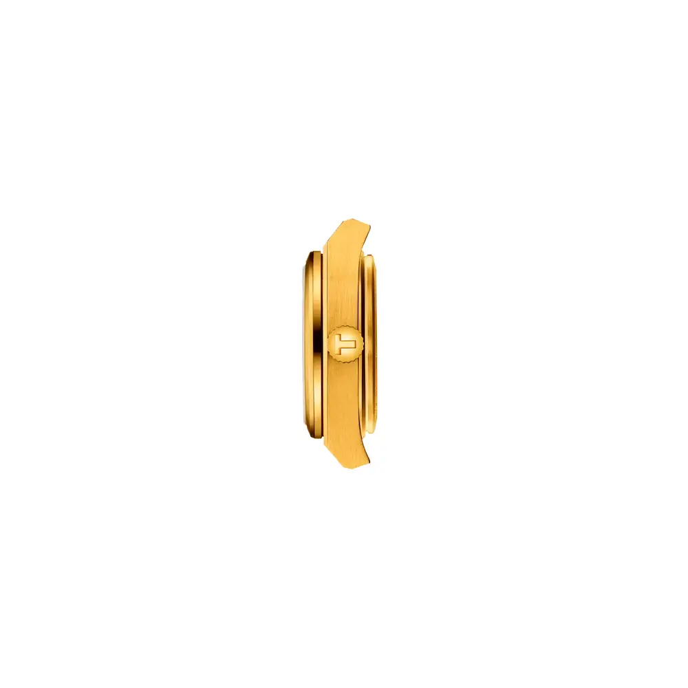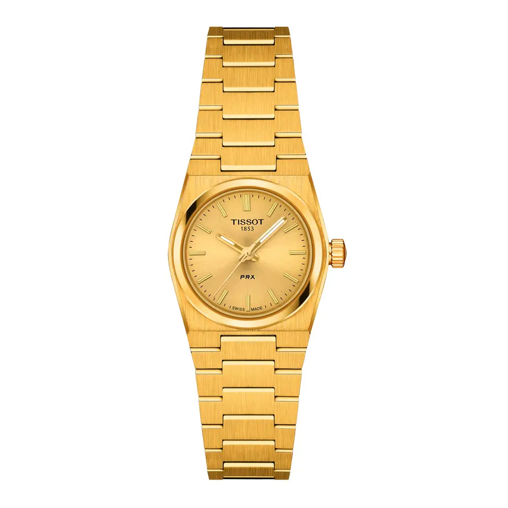 Model Tissot PRX 25mm T137.010.33.021.00 je elegantním ztělesněním retro stylu 70. let v moderním provedení. Jeho kompaktní 25mm pouzdro z nerezové oceli s PVD úpravou v odstínu žlutého zlata působí luxusně, přitom subtilně – ideální pro ženské zápěstí.