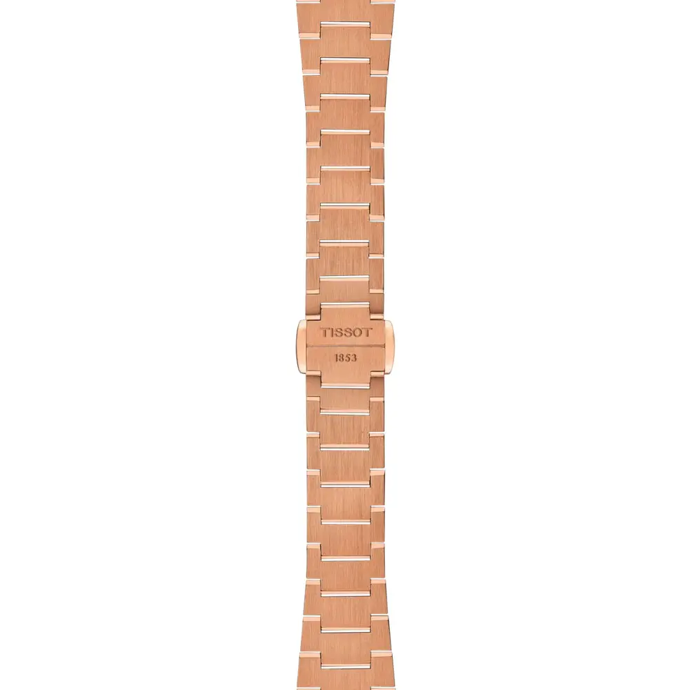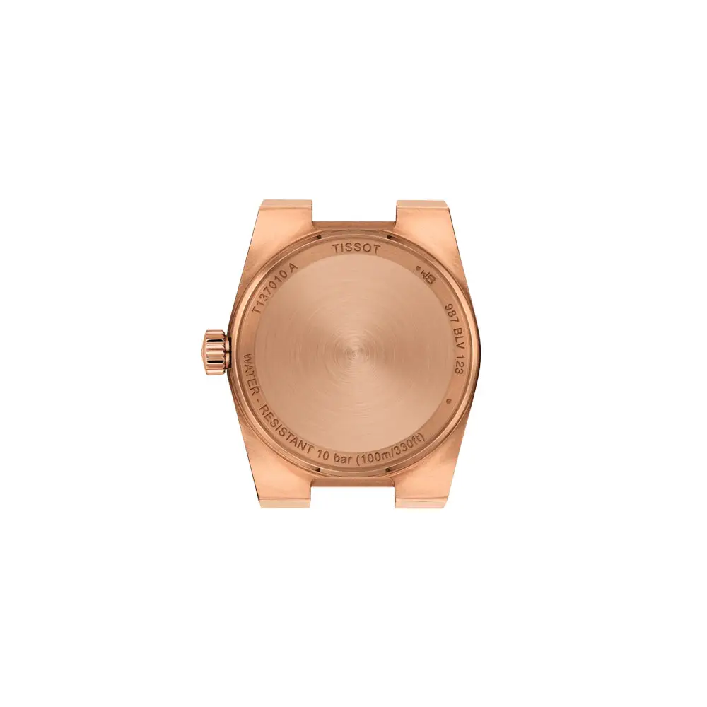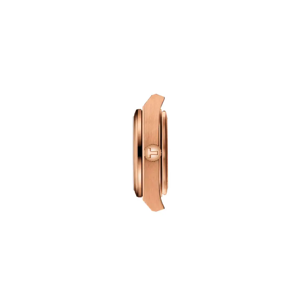 Model Tissot PRX 25mm T137.010.33.506.00 přináší ikonický design 70. let v moderní, dámské podobě. Jeho 25mm pouzdro z nerezové oceli 316L s růžově zlatou PVD úpravou doplňuje hnědý číselník se slunečním brusem, který vyzařuje teplo a eleganci.