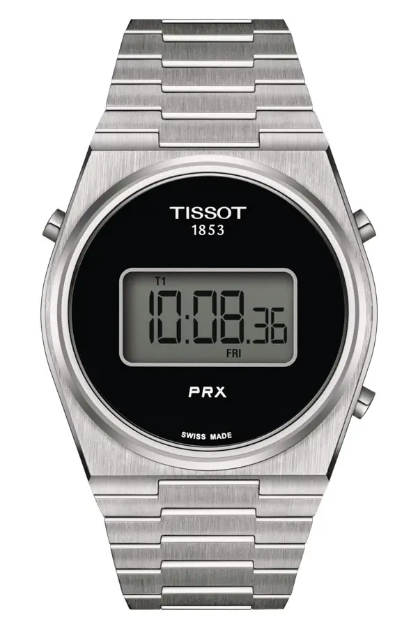 Integrovaný náramek z nerezové oceli s motýlkovou sponou zajišťuje pohodlné a bezpečné nošení. Tissot PRX Digital jsou ideální volbou pro ty, kteří hledají kombinaci retro stylu a moderních technologií.