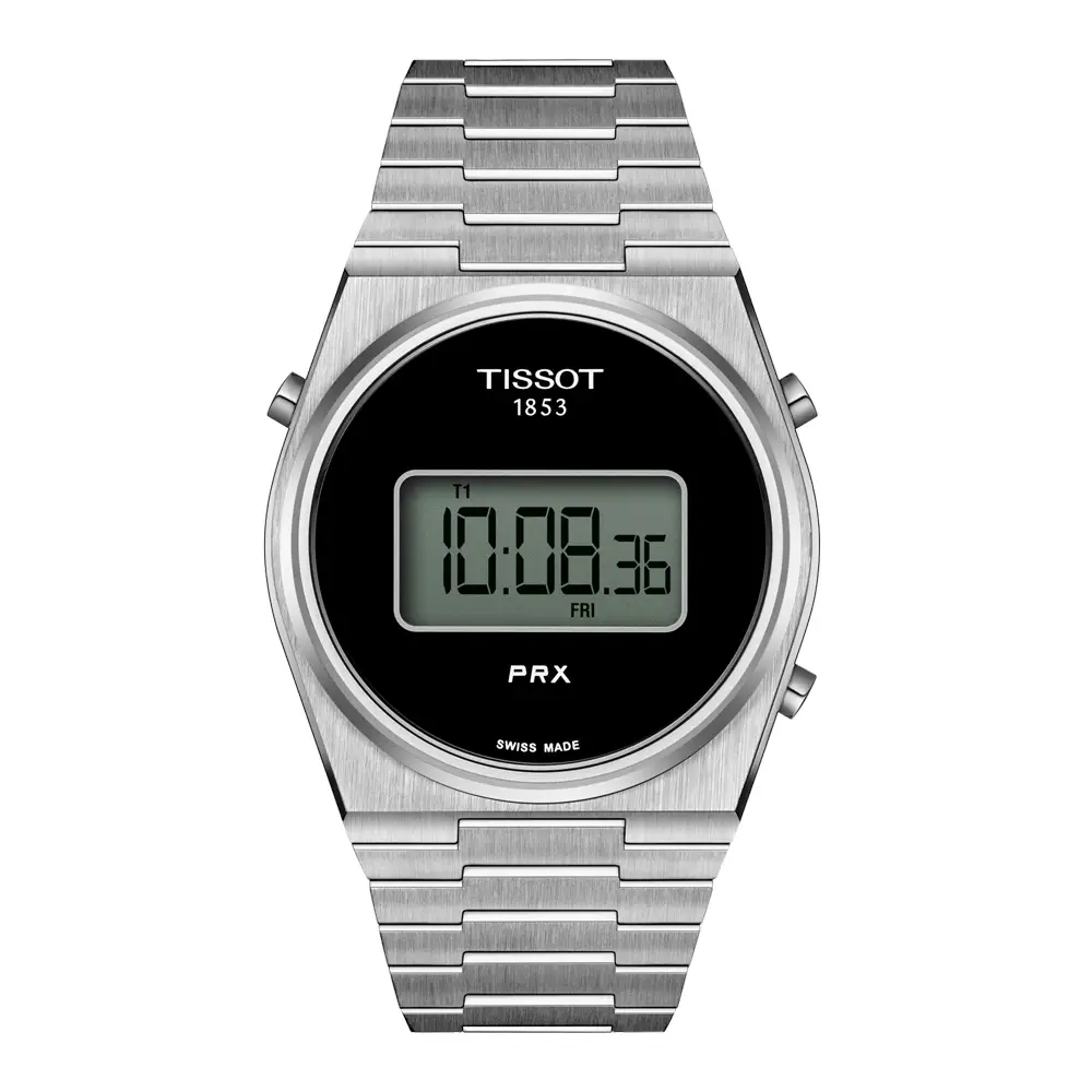 Tissot PRX Digital T137.463.11.050.00 představují moderní reinterpretaci ikonického designu z roku 1978, která propojuje retro styl s digitálními technologiemi současnosti. Jejich 40mm pouzdro z nerezové oceli působí robustně a elegantně, zatímco černý LCD displej chrání safírové sklíčko s antireflexní úpravou, zajišťující dokonalou čitelnost i odolnost proti poškrábání.