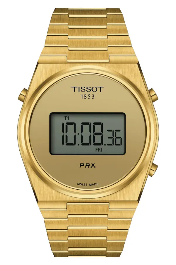 Tissot PRX Digital T137.463.33.020.00 jsou moderní hodinky, které spojují retro design s nejnovějšími technologiemi. Tyto hodinky jsou inspirovány ikonickým modelem PRX z roku 1978 a Tissot Digital Quartz, což jim dodává jedinečný a nadčasový vzhled. Hodinky mají pouzdro z nerezové oceli s PVD povlakem ve žluté barvě zlata a průměrem 40 mm, což je ideální velikost pro mnoho zápěstí.