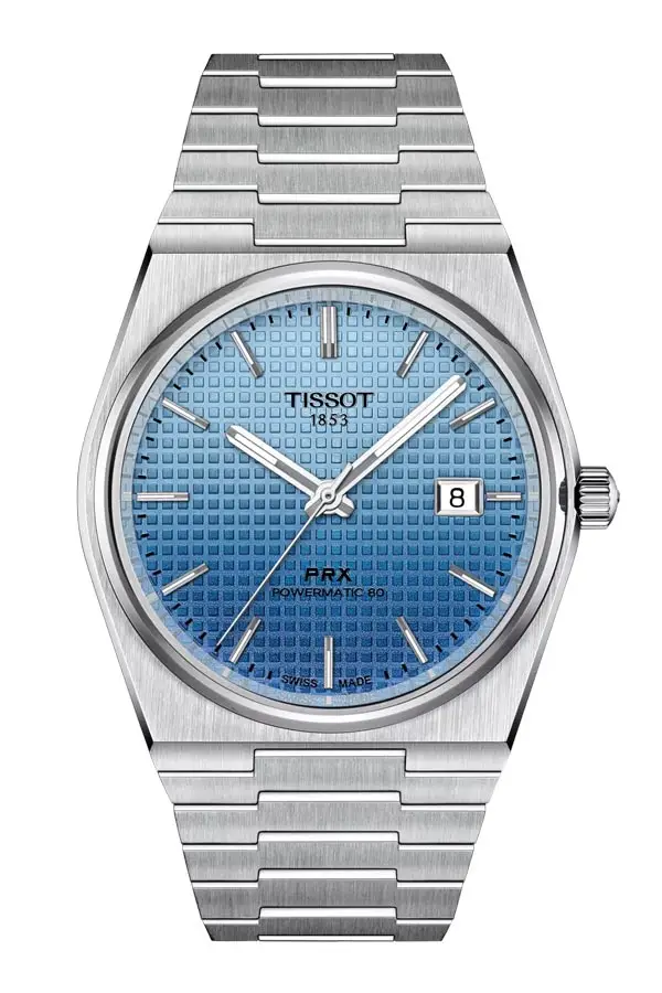 Tissot PRX Powermatic 80 40mm Gradient T137.407.11.351.01 je moderní reinterpretací ikonického designu z 70. let, která spojuje švýcarskou preciznost s výrazným retro stylem. Kulaté ocelové pouzdro o průměru 40 mm je osazeno odolným safírovým sklíčkem, které chrání fascinující modrý gradientní ciferník s jemným slunečním vzorem a praktickou datumovkou na třetí hodině.