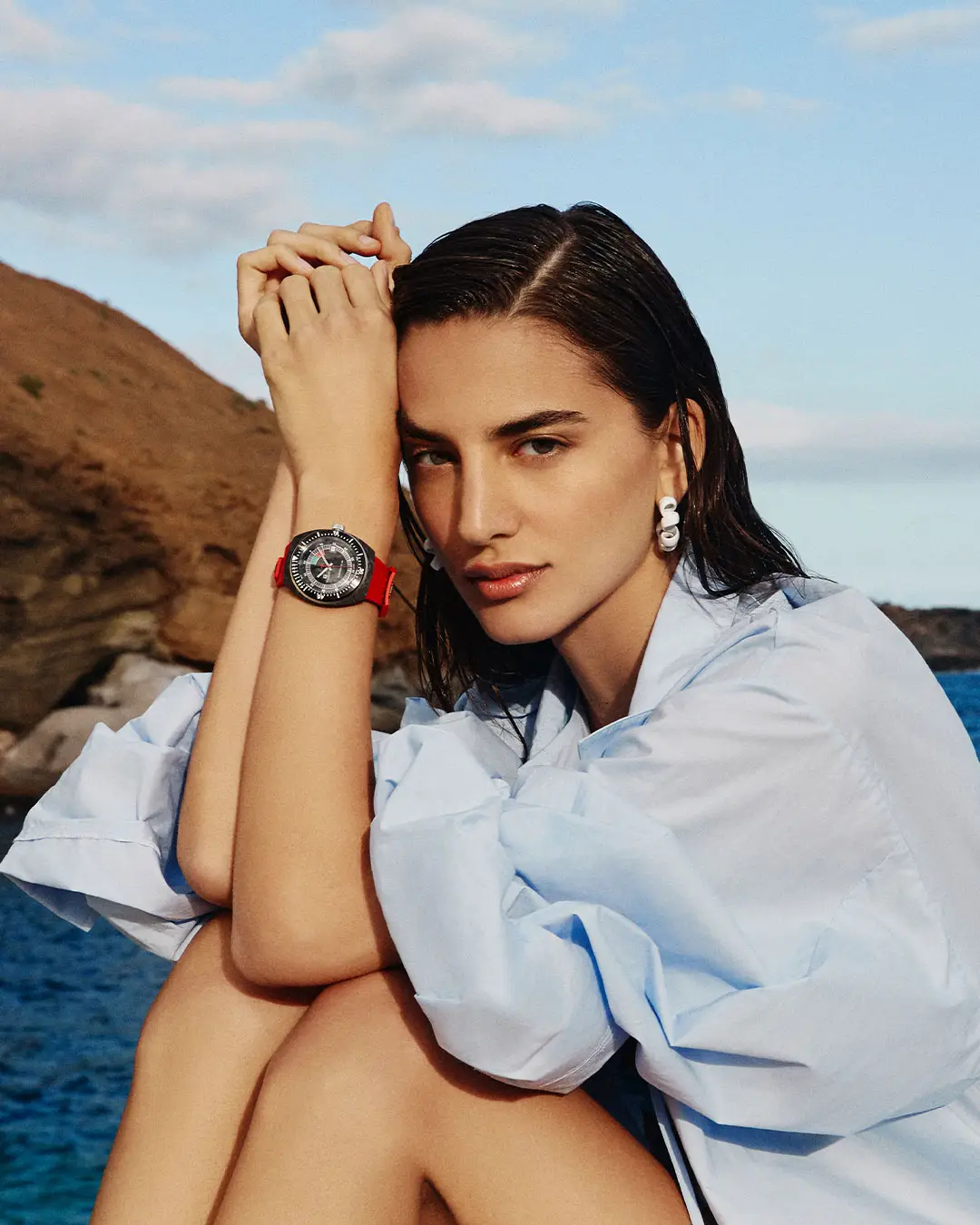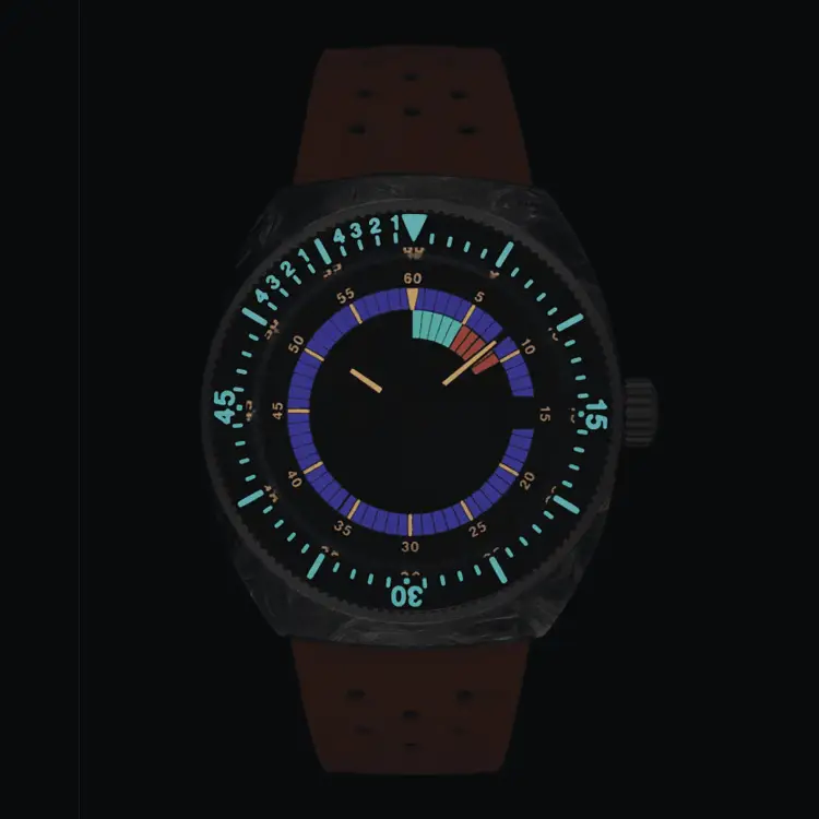 Černý ciferník s vícebarevnou luminiscencí působí hravě a funkčně – ručičky září žlutě, indexy oranžově a minutový kroužek modře. Červené a zelené úseky mezi 12. a 2. hodinou připomínají regatové časovače ze 70. let. Díky vodotěsnosti 300 m jsou Tissot Sideral Powermatic 80 ideální pro všechny, kdo hledají kombinaci vintage designu, inovace a odolnosti.