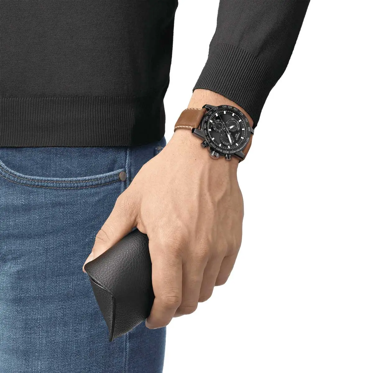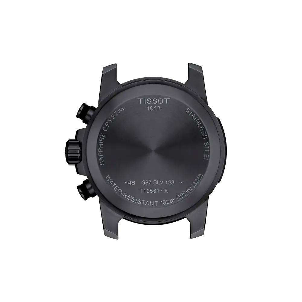 Tissot Supersport Chrono T125.617.36.051.01 spojuje sportovní sílu, moderní design a švýcarskou preciznost. Jeho ocelové pouzdro s černou PVD úpravou o průměru 45,5 mm doplňuje černý číselník s luminiscenčními ručkami, indexy a třemi subciferníky chronografu, které zajišťují vynikající čitelnost za všech podmínek.