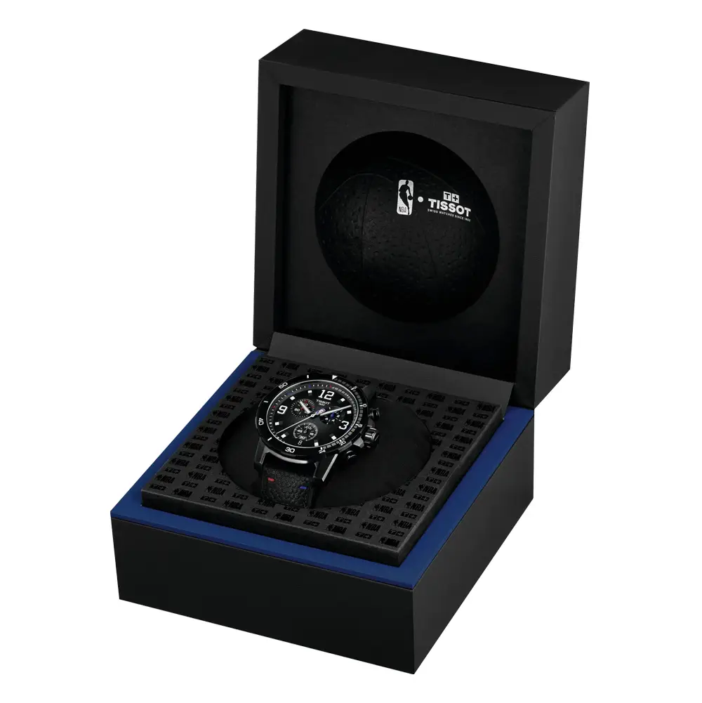 Tissot Supersport NBA Special Edition T125.617.37.067.00 je výrazný pánský chronograf spojující sportovní dynamiku a robustní konstrukci. Pouzdro o průměru 45,5 mm z nerezové oceli s černou PVD úpravou doplňuje safírové sklíčko s vysokou odolností proti poškrábání a vodotěsnost 100 m (10 bar). Kombinace tmavého provedení a siluet inspirovaných profesionálním basketbalem vytváří model, který vynikne na každém zápěstí.