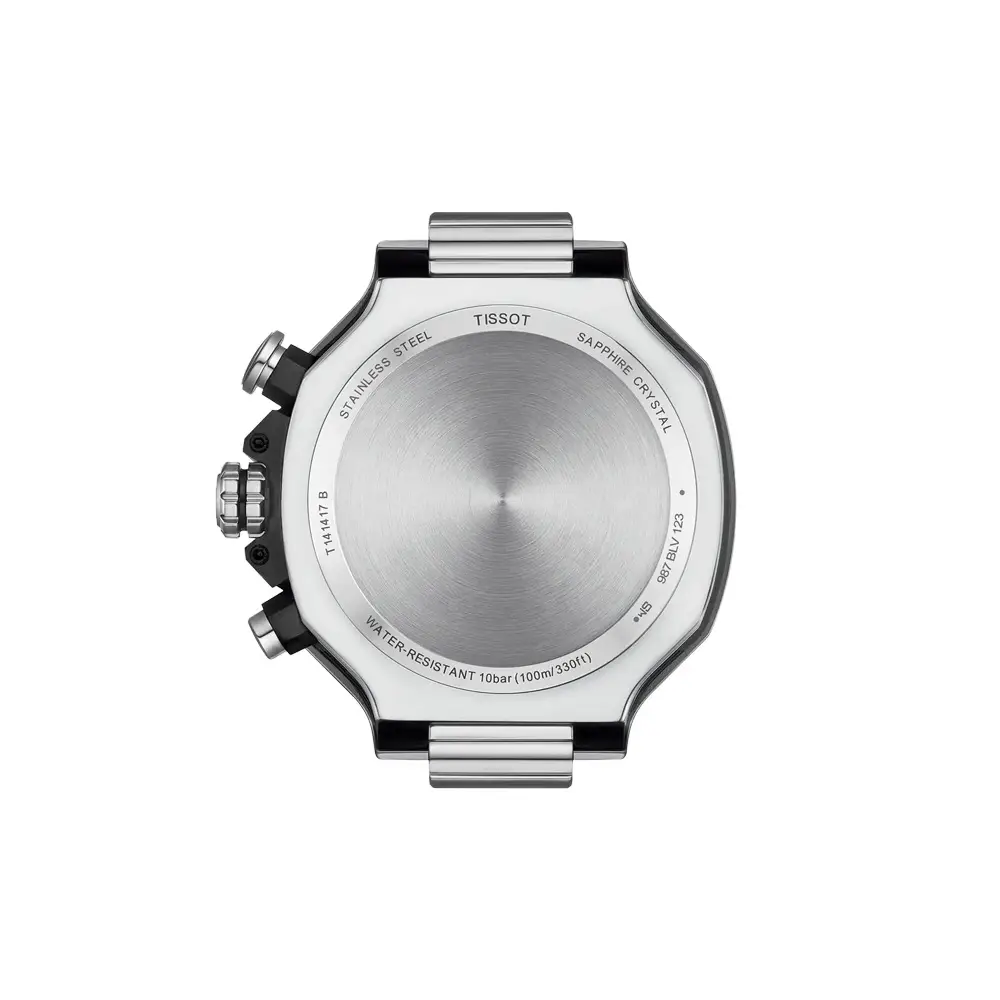 Model Tissot T-Race Chronograph T141.417.11.031.00 je výrazné sportovní pánské chronografové hodinky z kolekce T-Sport, inspirované dynamikou motosportu a partnerstvím značky Tissot s MotoGP. Stříbrný ciferník s třemi pomocnými chronografy, kontrastními ručičkami a luminiscenčními indexy zajišťuje skvělou čitelnost času i ve tmě či při rychlé jízdě.