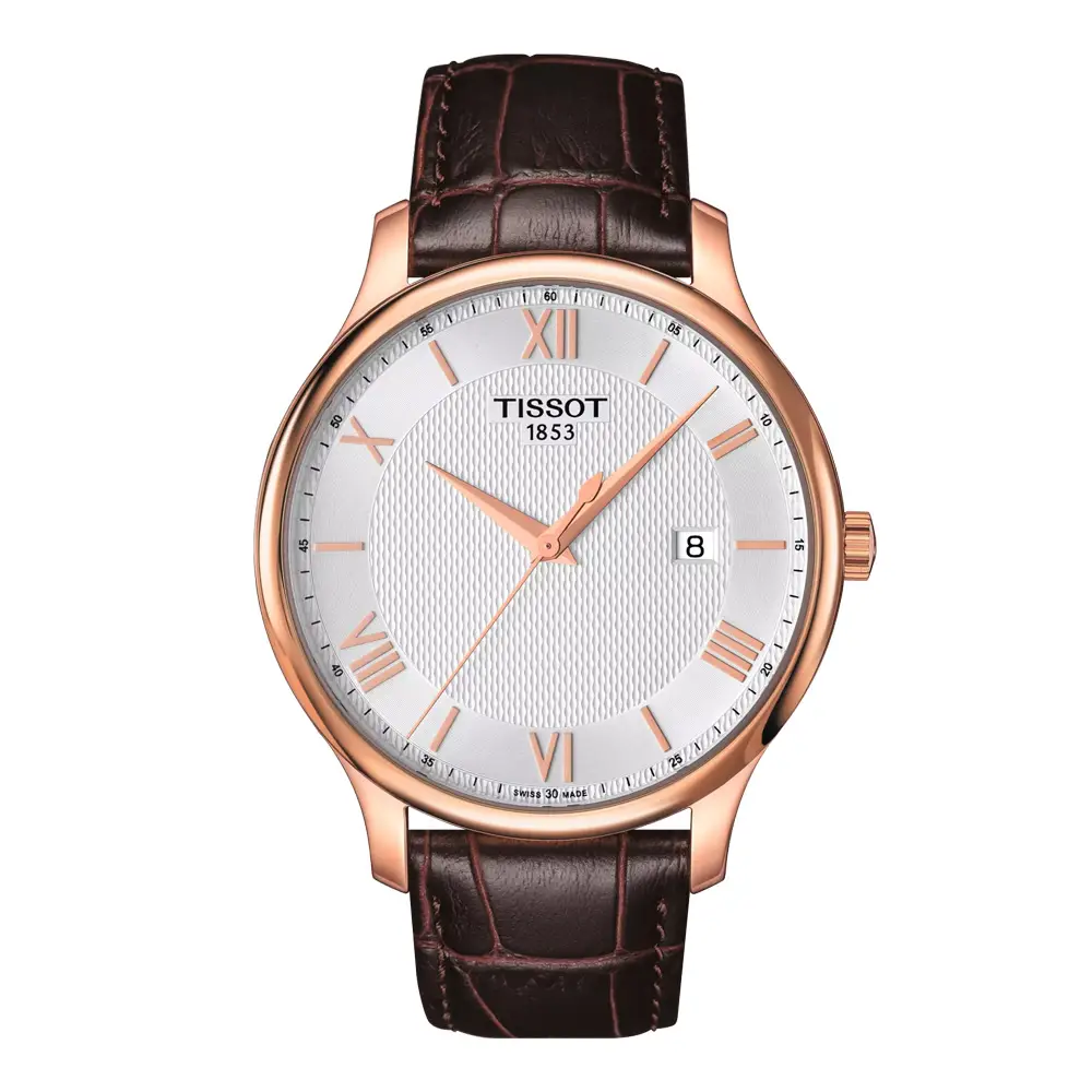 Model Tissot Tradition T063.610.36.038.00 představuje elegantní interpretaci klasických pánských hodinek, která spojuje švýcarskou tradici s moderním designem. Pouzdro z nerezové oceli 316L s růžově zlatou PVD úpravou o průměru 42 mm dodává hodinkám sofistikovaný vzhled, zatímco stříbrný číselník s jemnými římskými číslicemi podtrhuje jejich nadčasovou eleganci. Celek doplňuje kvalitní hnědý kožený řemínek, ideální pro formální i každodenní nošení.