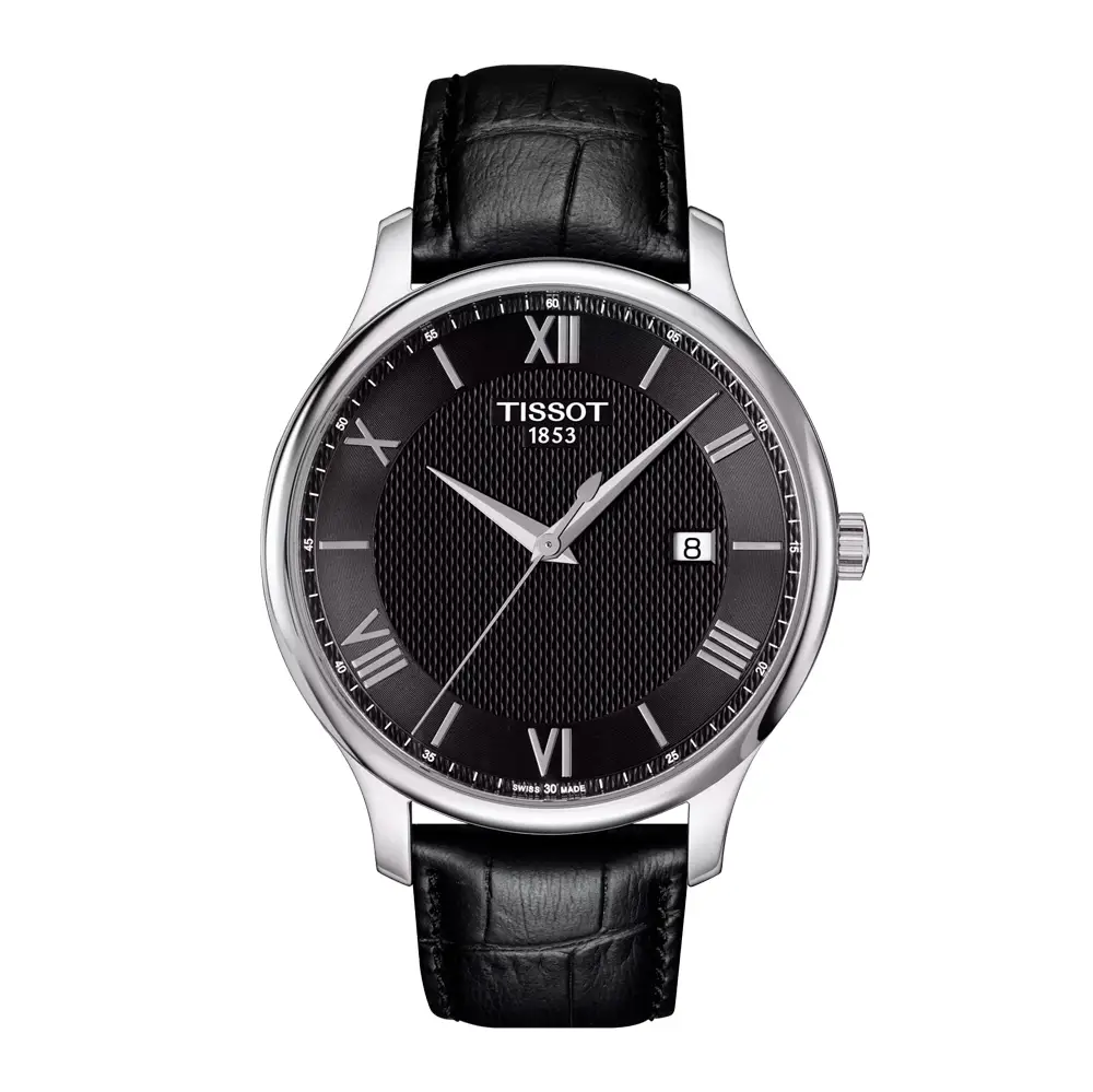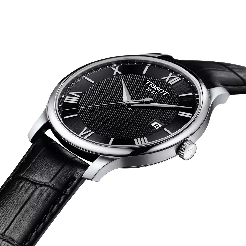 Tissot Tradition Quartz T063.610.16.058.00 spojuje klasickou eleganci, moderní styl a švýcarskou přesnost. Jeho ocelové pouzdro o průměru 42 mm doplňuje černý číselník s jemnou texturou, tenkými indexy a leštěnými ručkami, které podtrhují nadčasový charakter tohoto modelu.