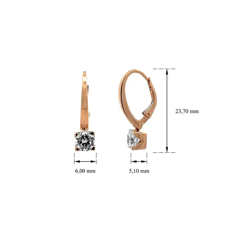 Visací Náušnice se Zirkony z Růžového Zlata