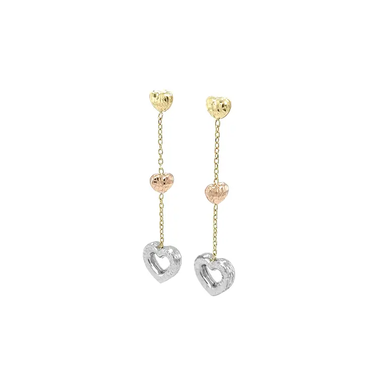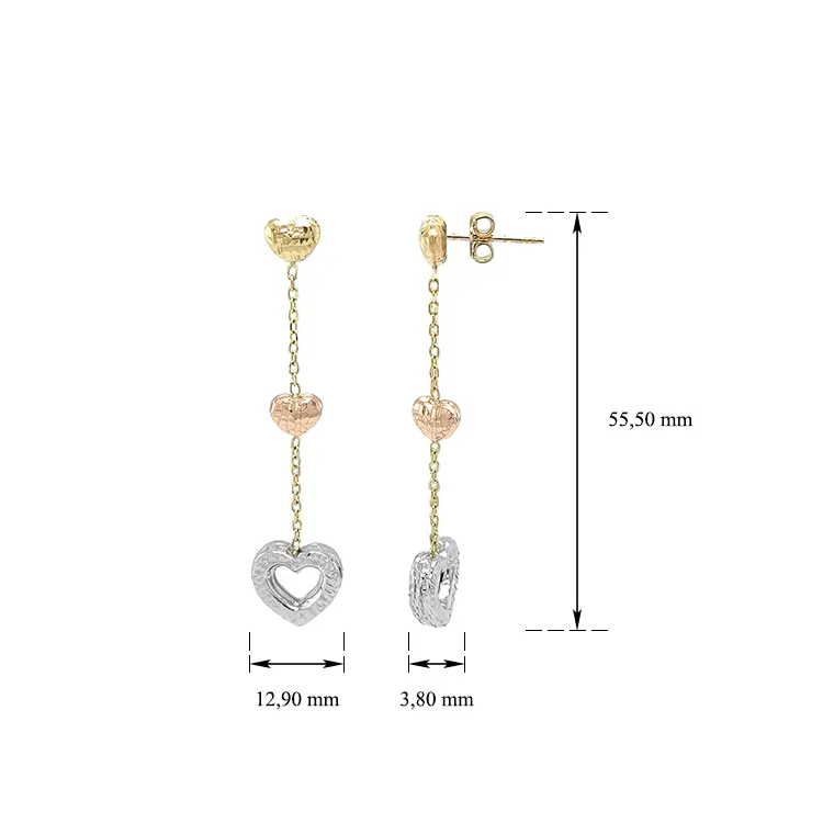 Visací Náušnice Srdíčka z Kombinovaného Zlata